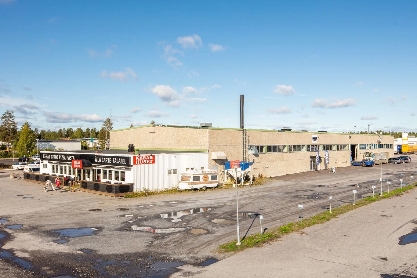 Industrifastighet belägen på Storheden. Hyresgäster inom fastigheten är Kebabhuset, Golvteknik, STS Sydhamnens Trailer Service, Släpis och Preem.