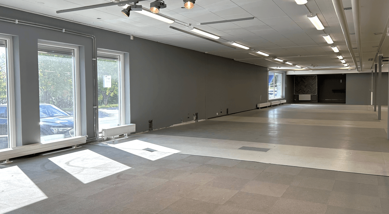 Butiksyta om ca 670 kvm och lager ca 200 kvm med markport. Personalytor i 2 plan.