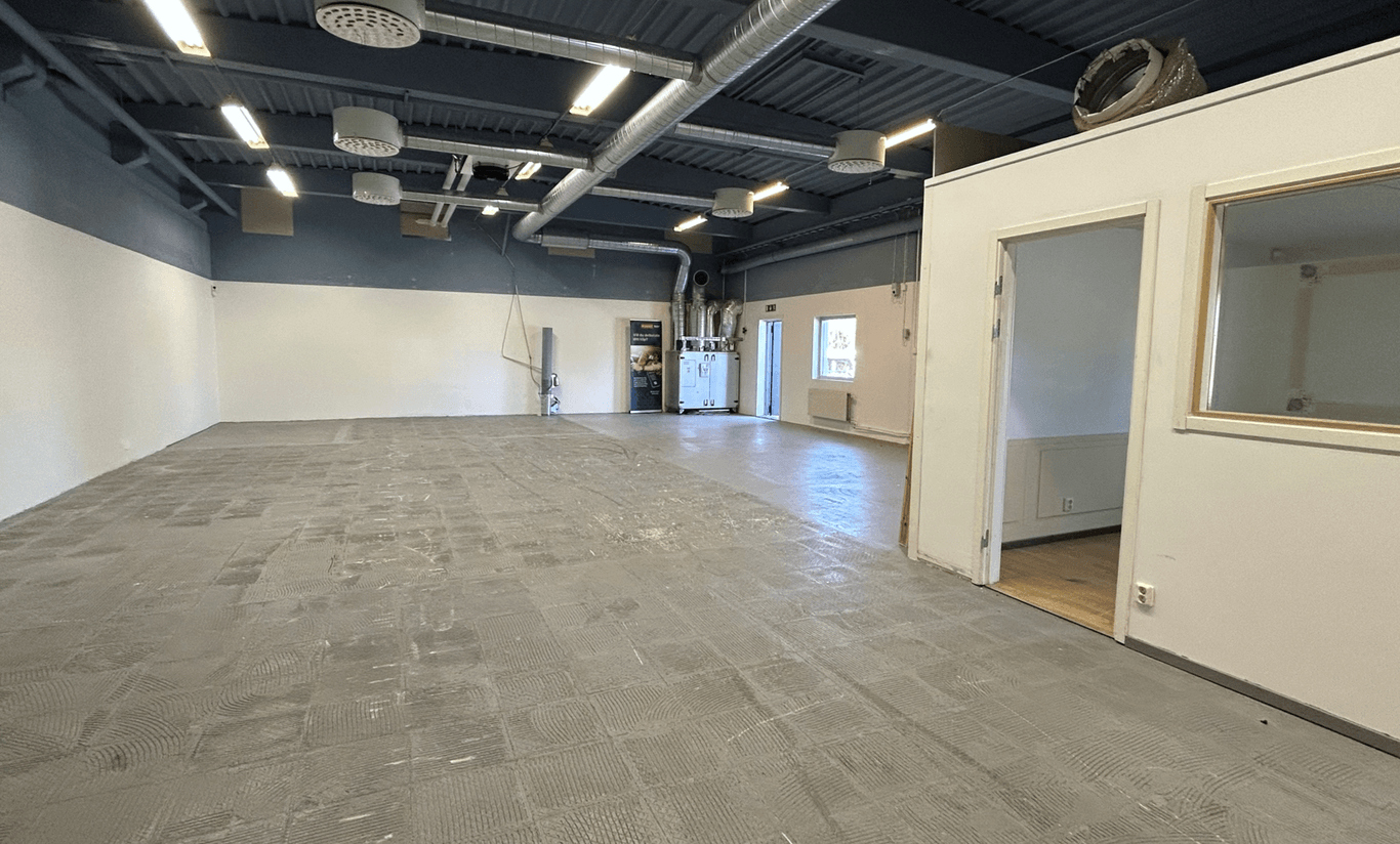 Här finns kontorsrum, WC och pausutrymme, samt en större öppen yta som kan anpassas efter behov. Lokalen har egen entré på baksidan av byggnaden.