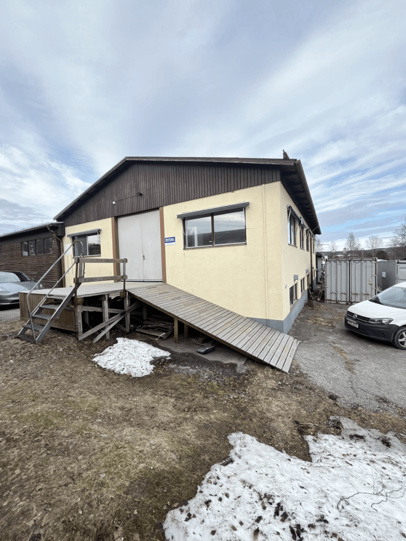Tillgänglig via både trapp eller utvändig ramp, vilket gör det lätt att transportera varor och material.