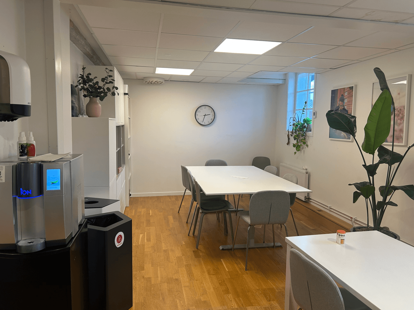 2 mindre kontorsrum samt 1 stort rum som rymmer plats för flera arbetsplatser. Stort fika/-konferensrum. Modernt kontor med äldre charm med t ex synliga träbalkar.