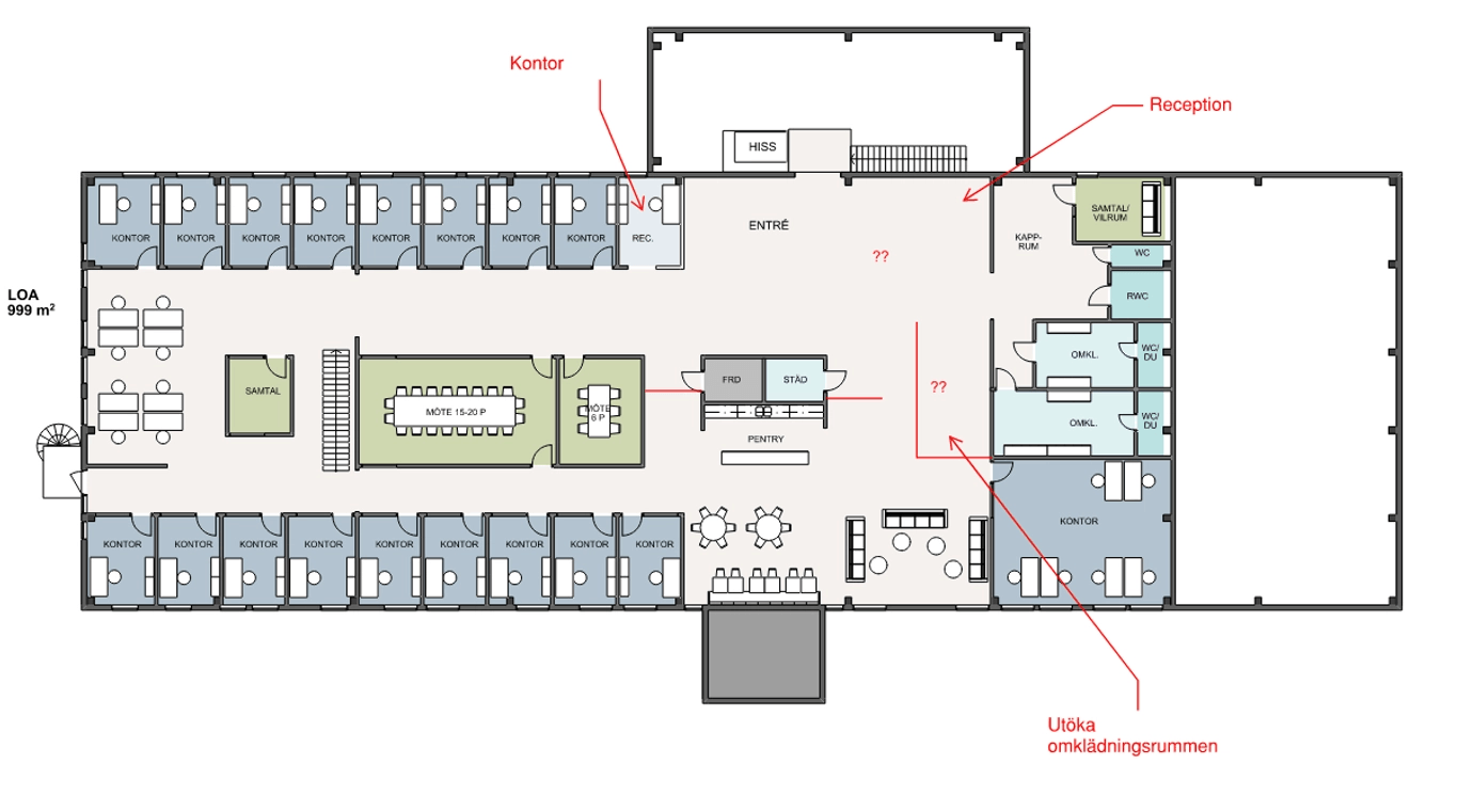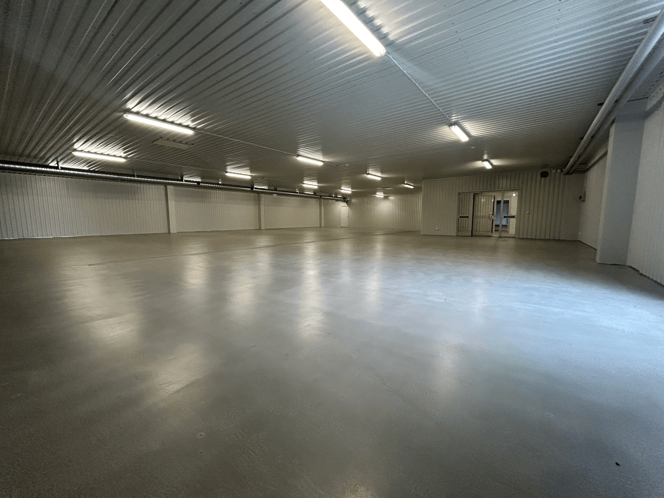 Lokalen består idag av ca 100 kvm garage i plan 1 med genomkörning och ca 1000 kvm landskap i övre plan som kan anpassas efter den verksamhet är tänkt att bedrivas där.