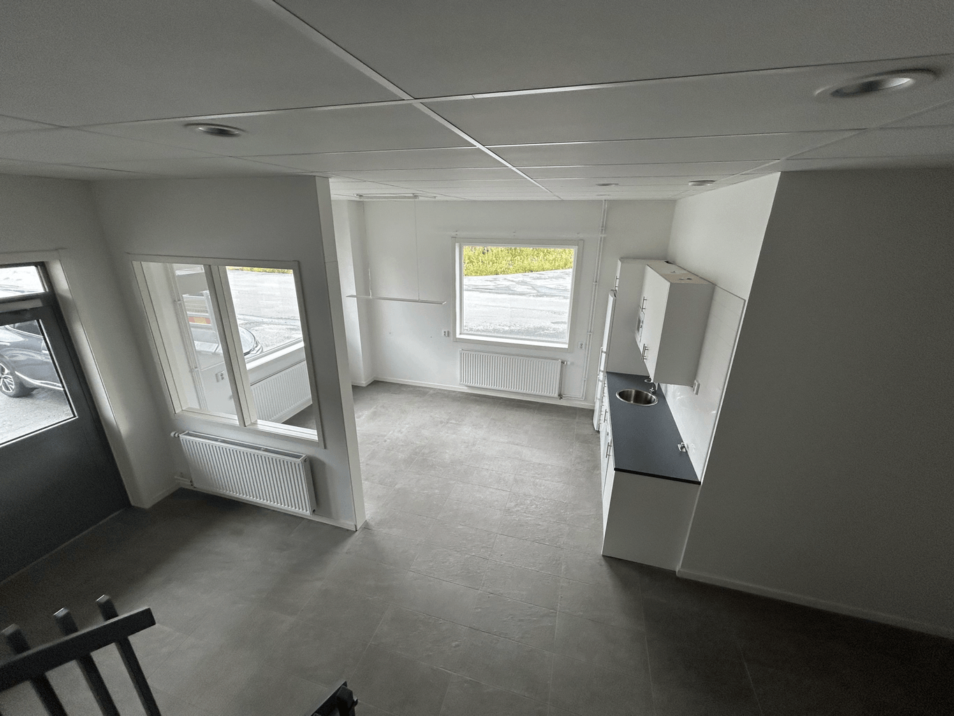 Modern kontorslokal med bra ljusinsläpp. Lokalen är fördelad på två plan med personalytor på bottenplan och kontor på övervåningen. I lokalen finns komfortkyla för ett behaglig inomhusklimat.