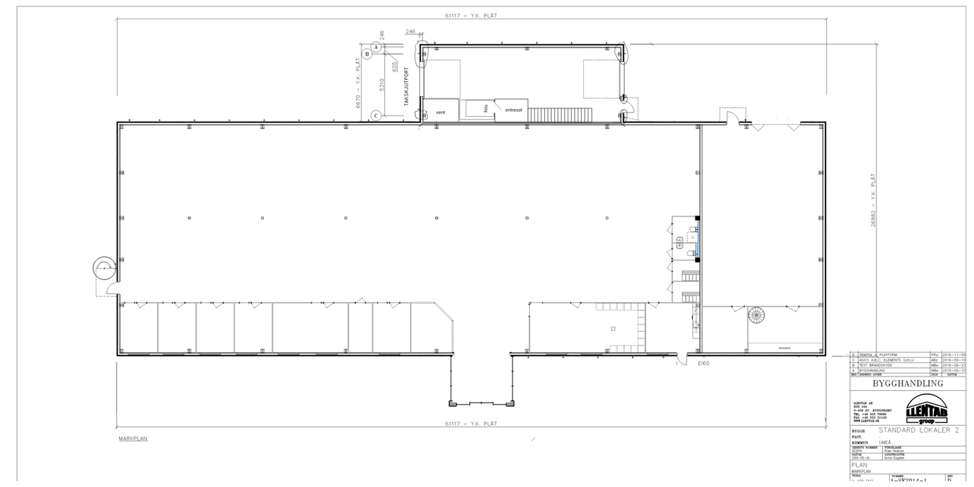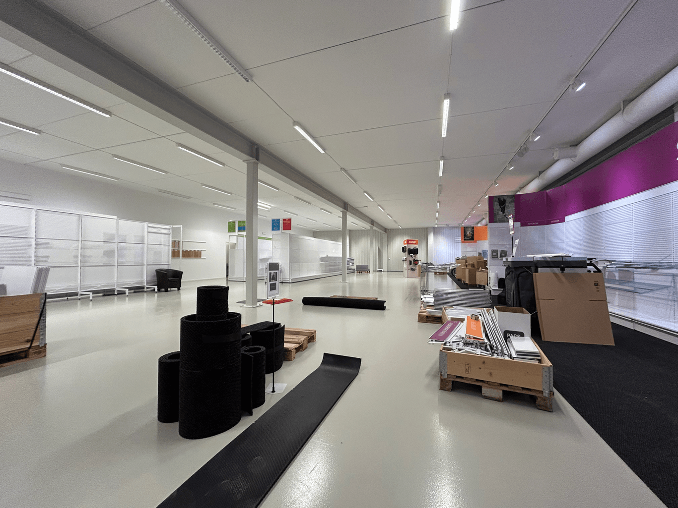 Lokalen består av ca 1200 kvm butikyta med kontor, konferens, fikarum, toaletter samt höglager. Möjlighet finns att utöka ytan med ytterligare ca 1000 kvm på övre plan som kan nyttjas för t.ex. kontorslandskap eller mer lageryta.