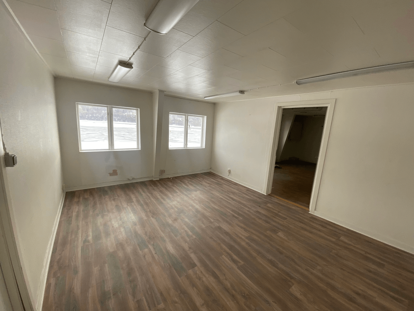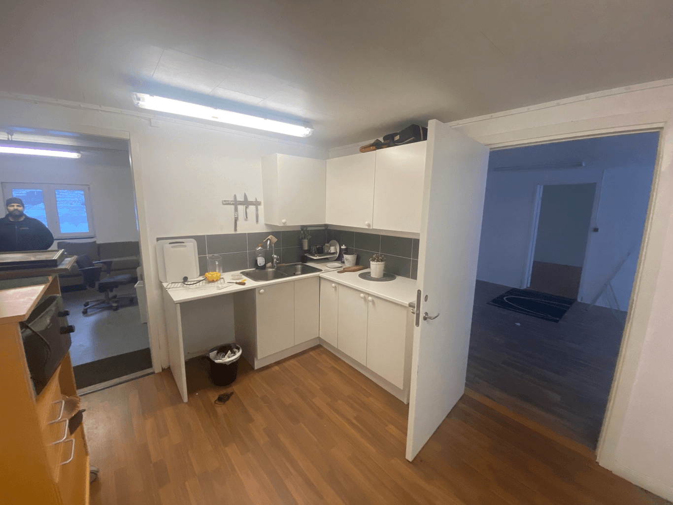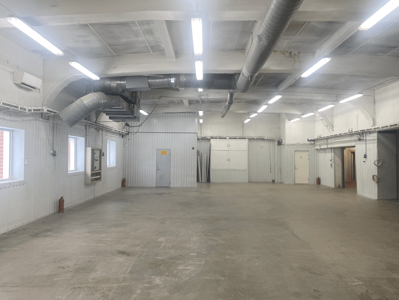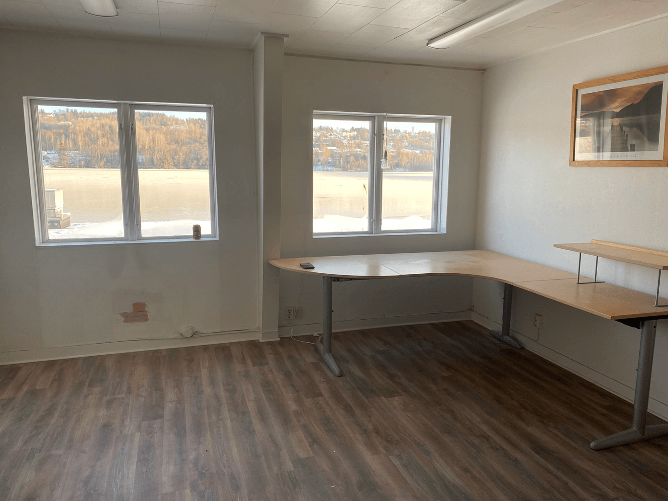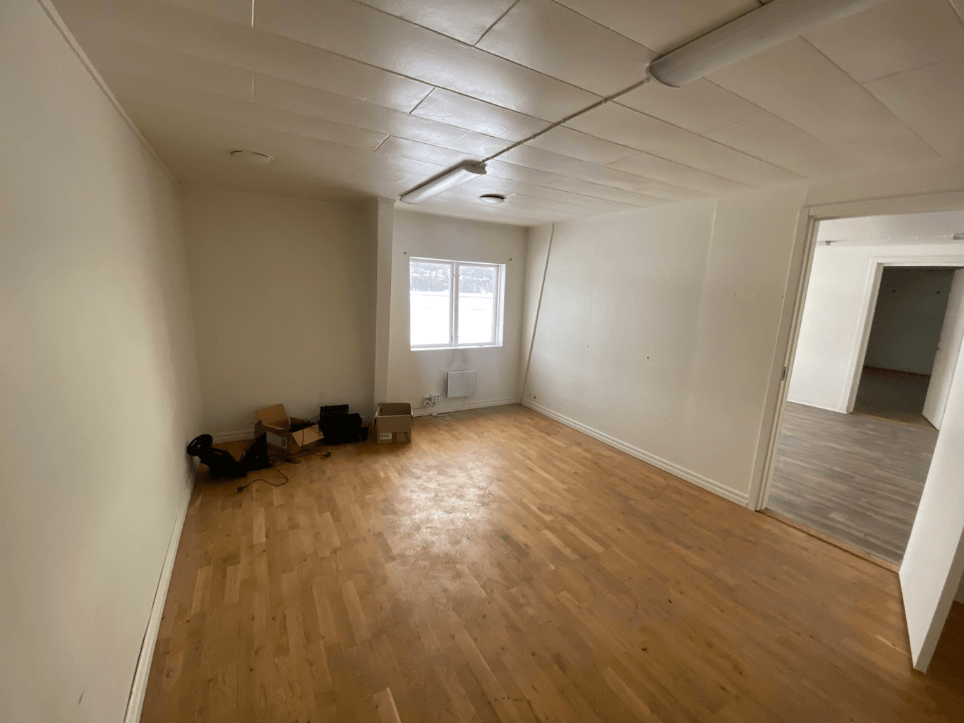 På bottenvåningen finns totalt 460 kvm lokalytor. På övervåningen finns två stycken kontor, omklädningsrum med duschar samt kök med fikarum.