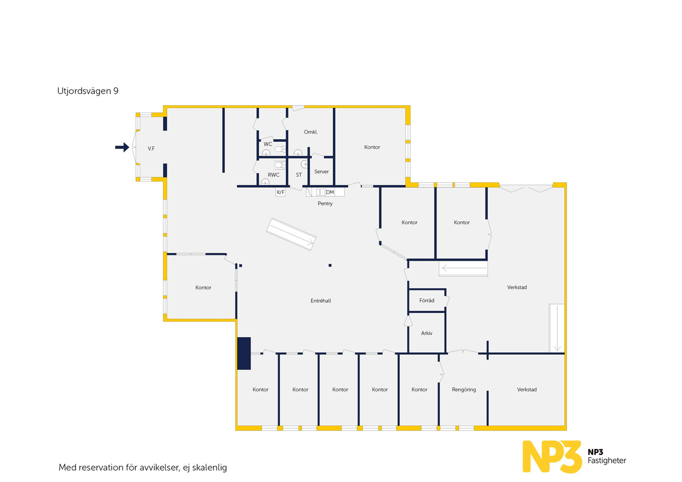 Varmt välkomna till Utjordsvägen 9 och 400 kvm lokal! Trivsam lokal med entré ut mot vägen. Lokalen innefattar både verkstadsdel och kontorsdel. Utöver det som syns på ritningen finns även ett entresolplan med konferensrum i lokalen. Välkommen att kontakta oss vid intresse!
