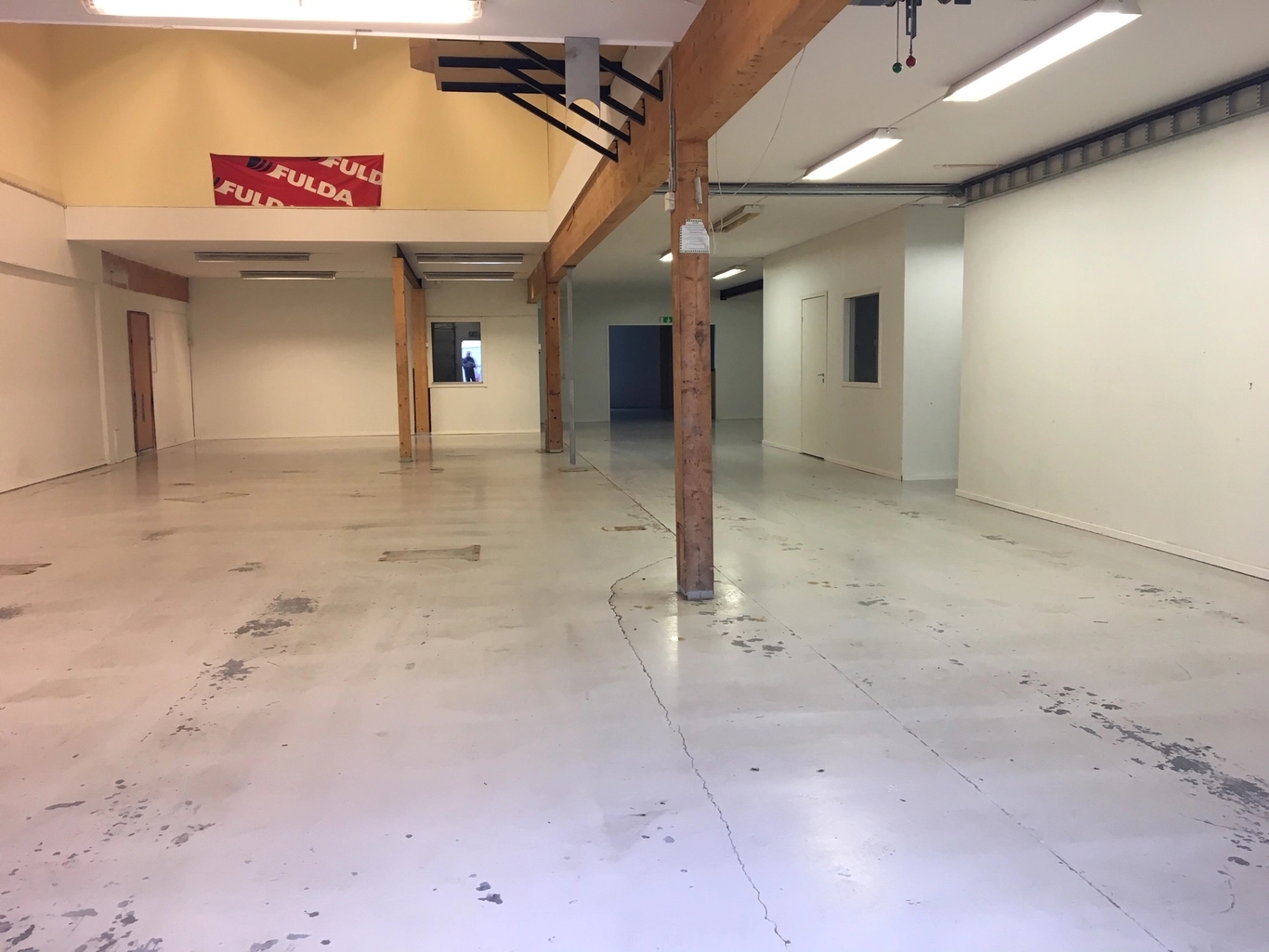 Öppet planerad lokal som domineras av butik- lagerytor.