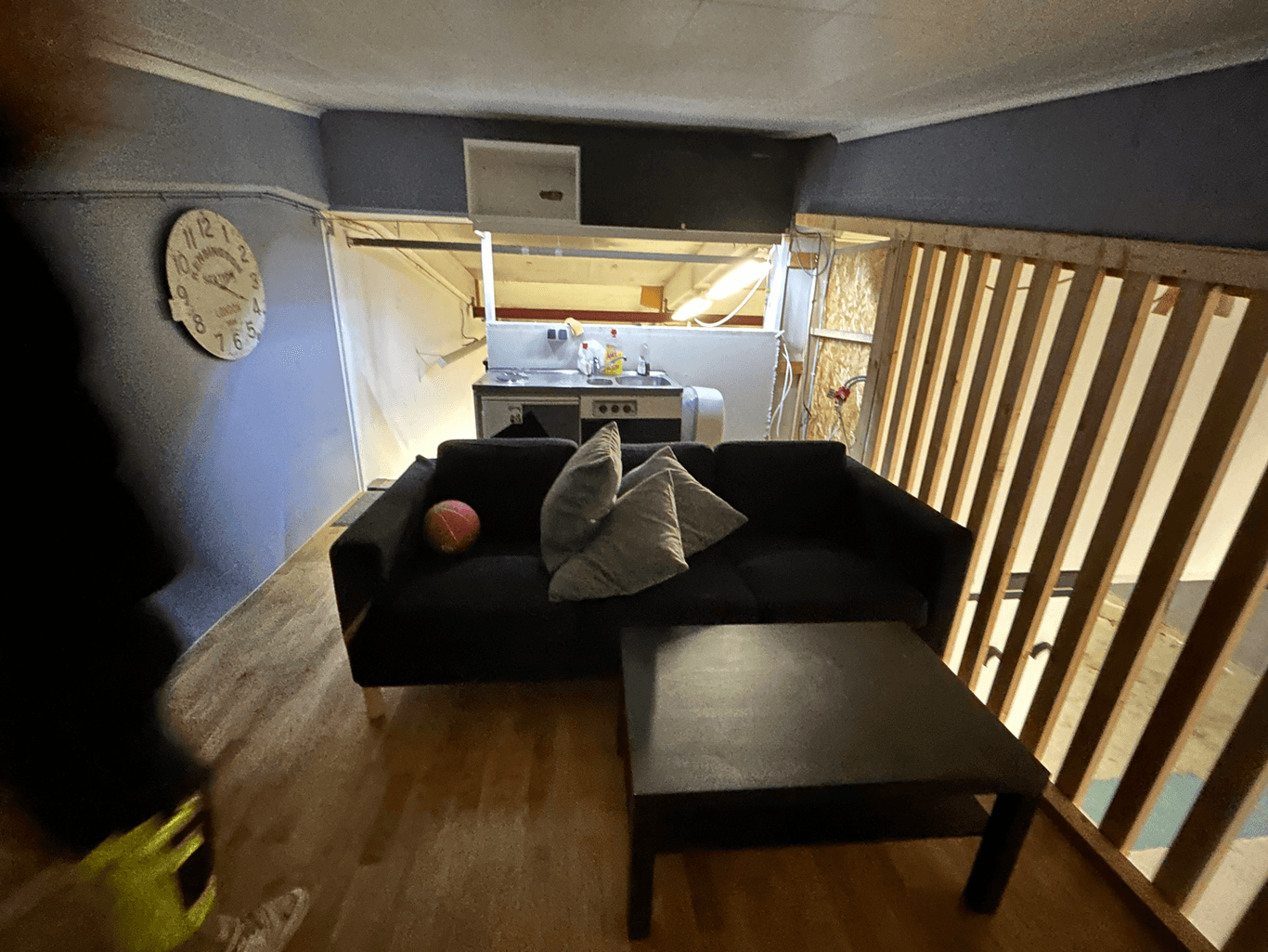 Lokalen är ca 17 m djup. Det finns även ett tillbyggt entresol på delar av lokalen.