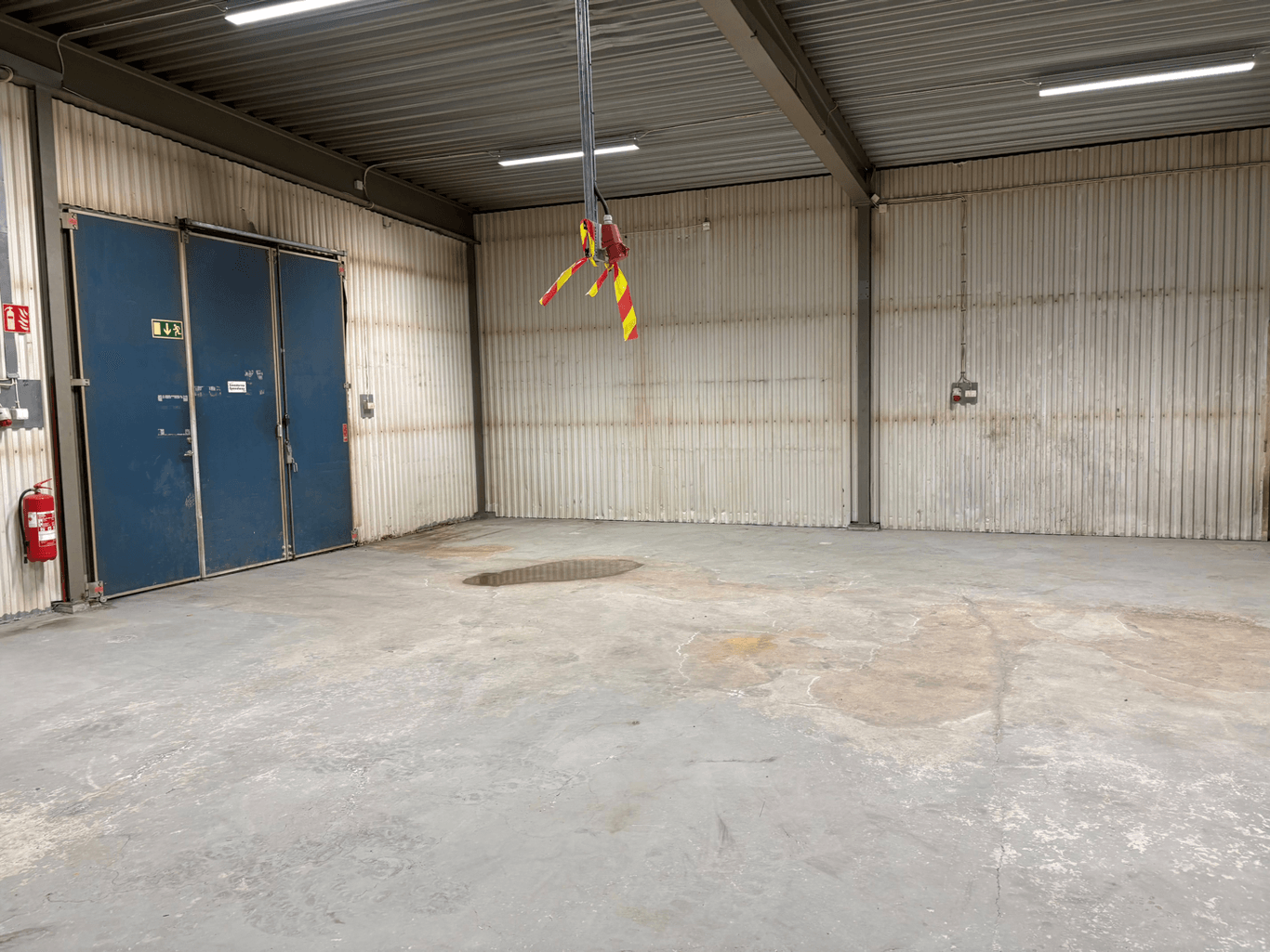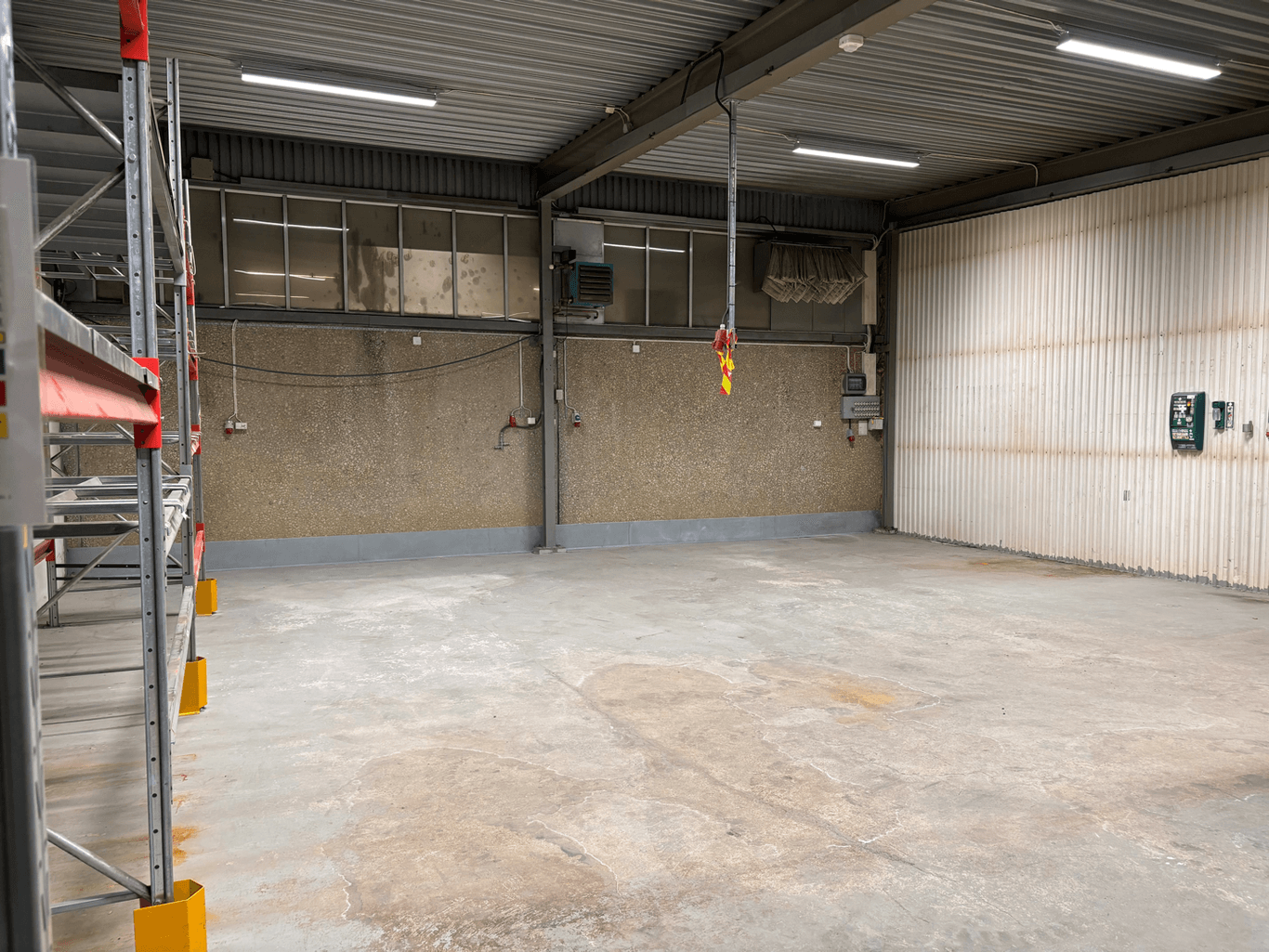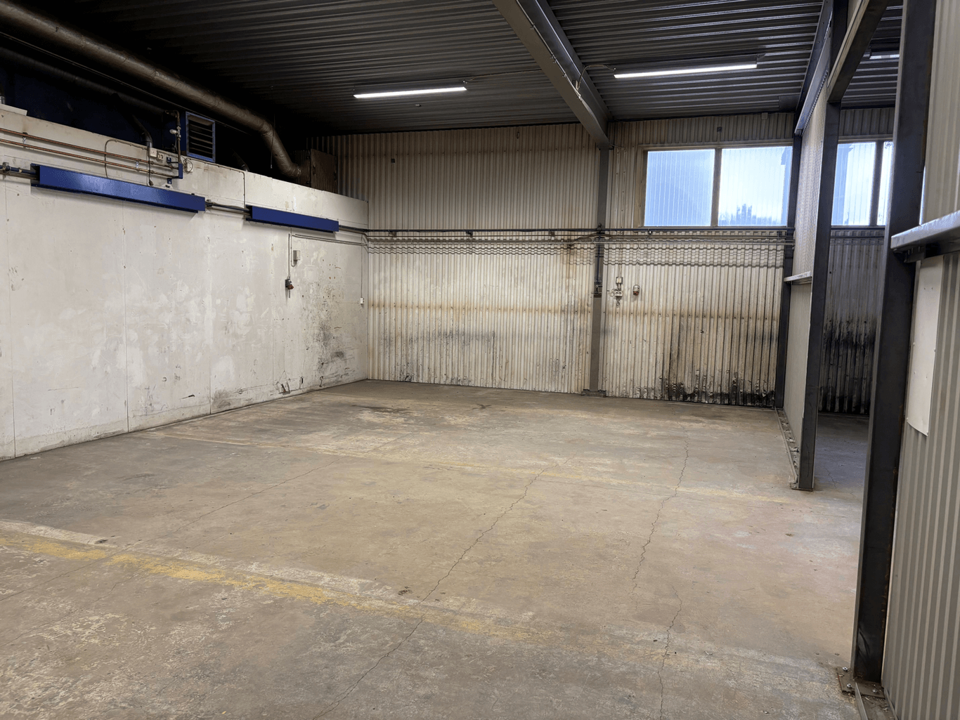 Verkstad/Lagerlokal som har högt i tak och utan pelare.