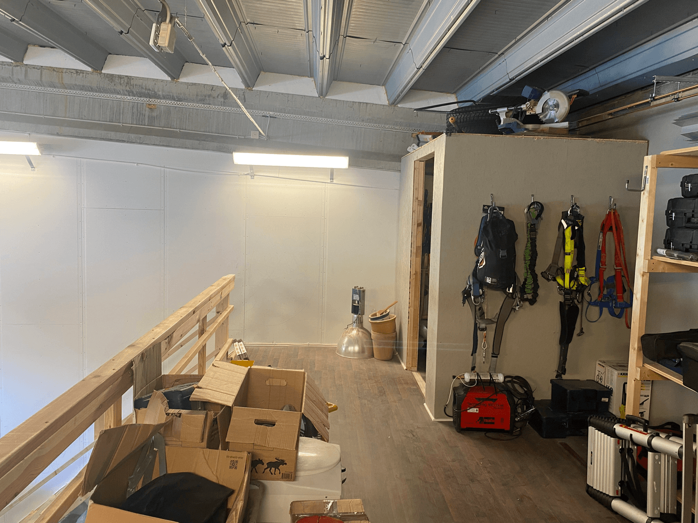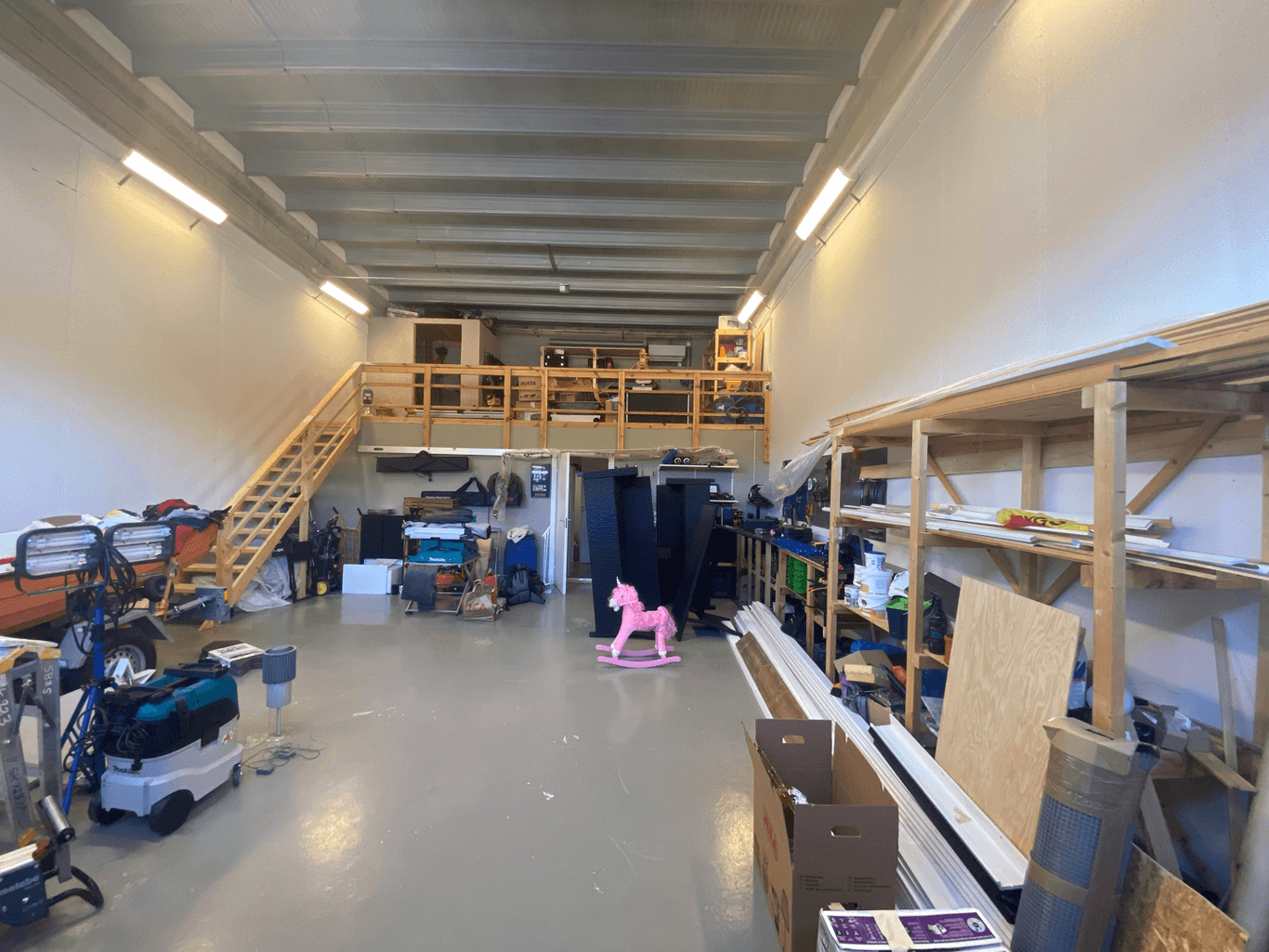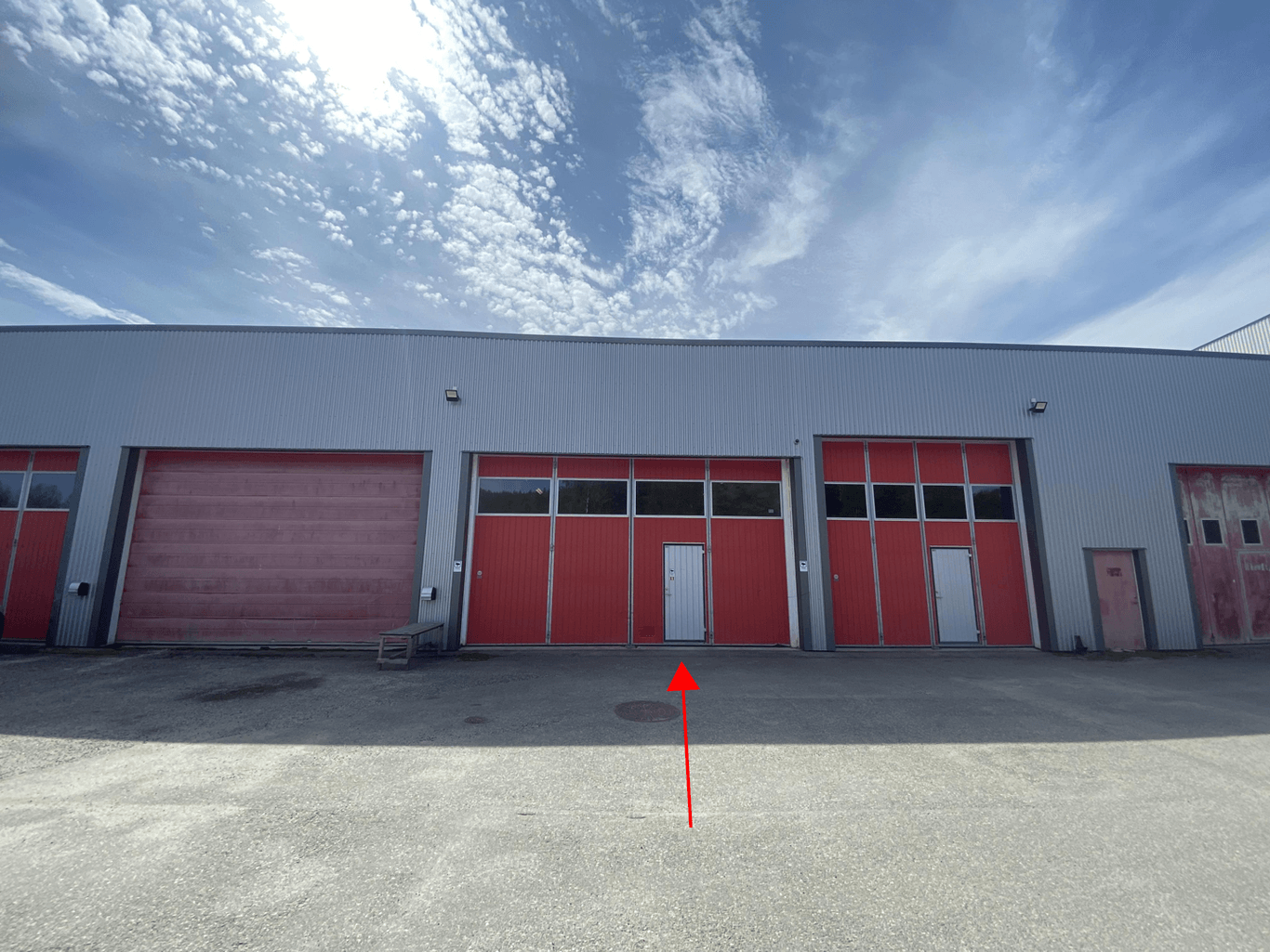 Garage/lager med port 6,7x4m (bredd x höjd) samt enklare kontor och fikarum