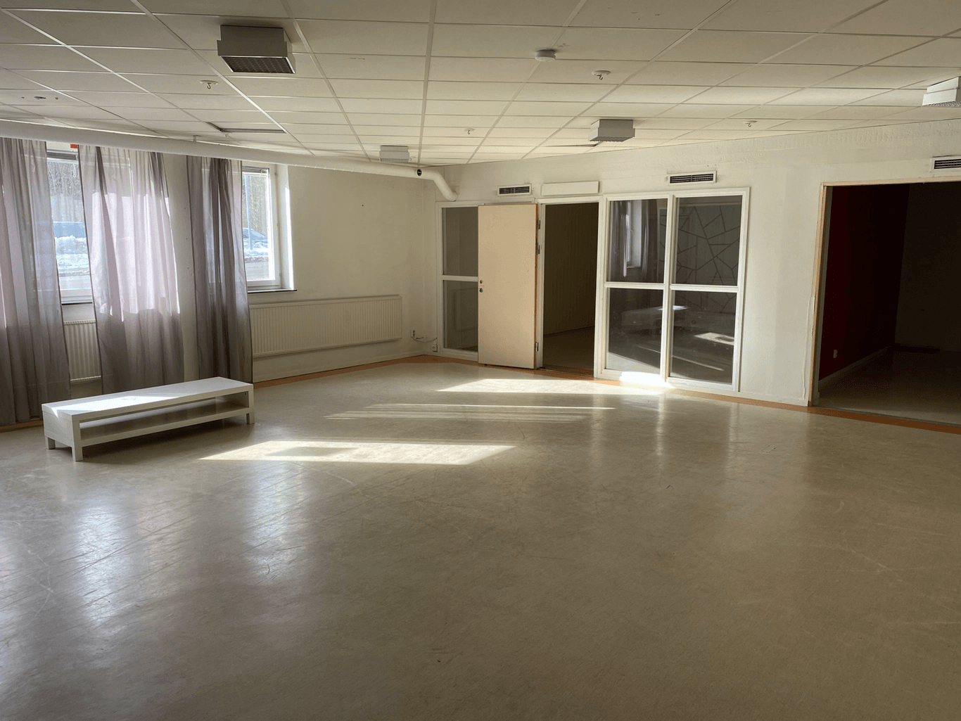 Om intresse finns så går det att ta bort innerväggarna och skapa stora öppna ytor.