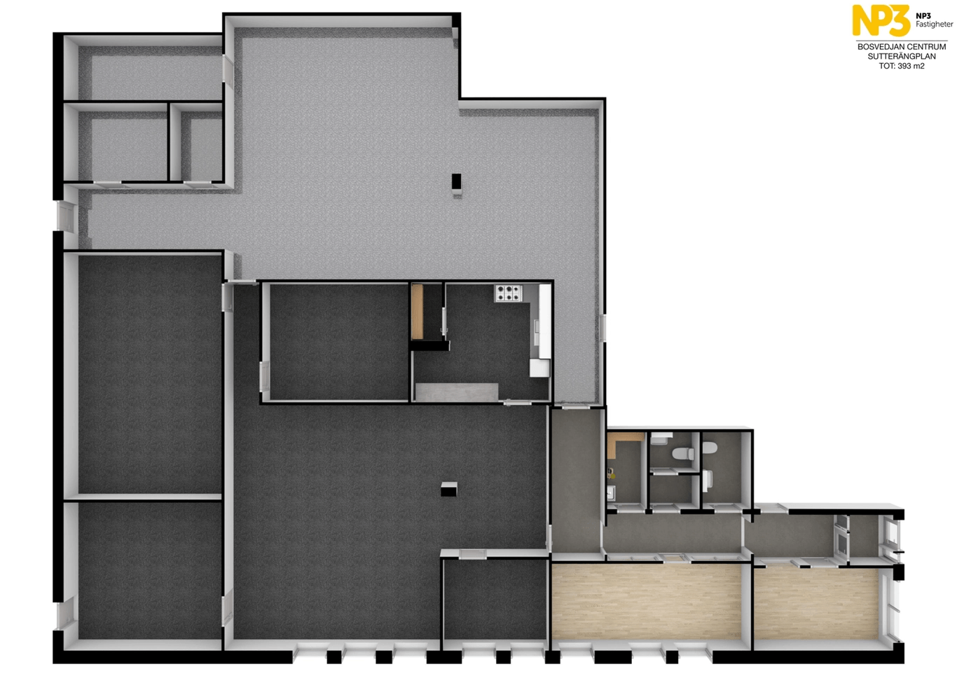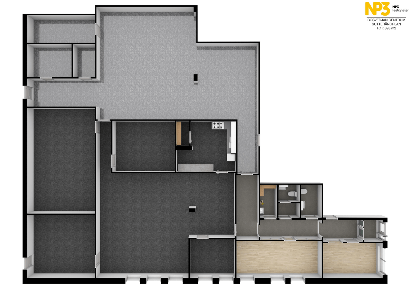 Mångsidig lokal på bottenvåningen i Bosvedjan Centrum. Det går att kombinera kontor med lager, eller en butik. En mindre port går att installera intill entrédörren.