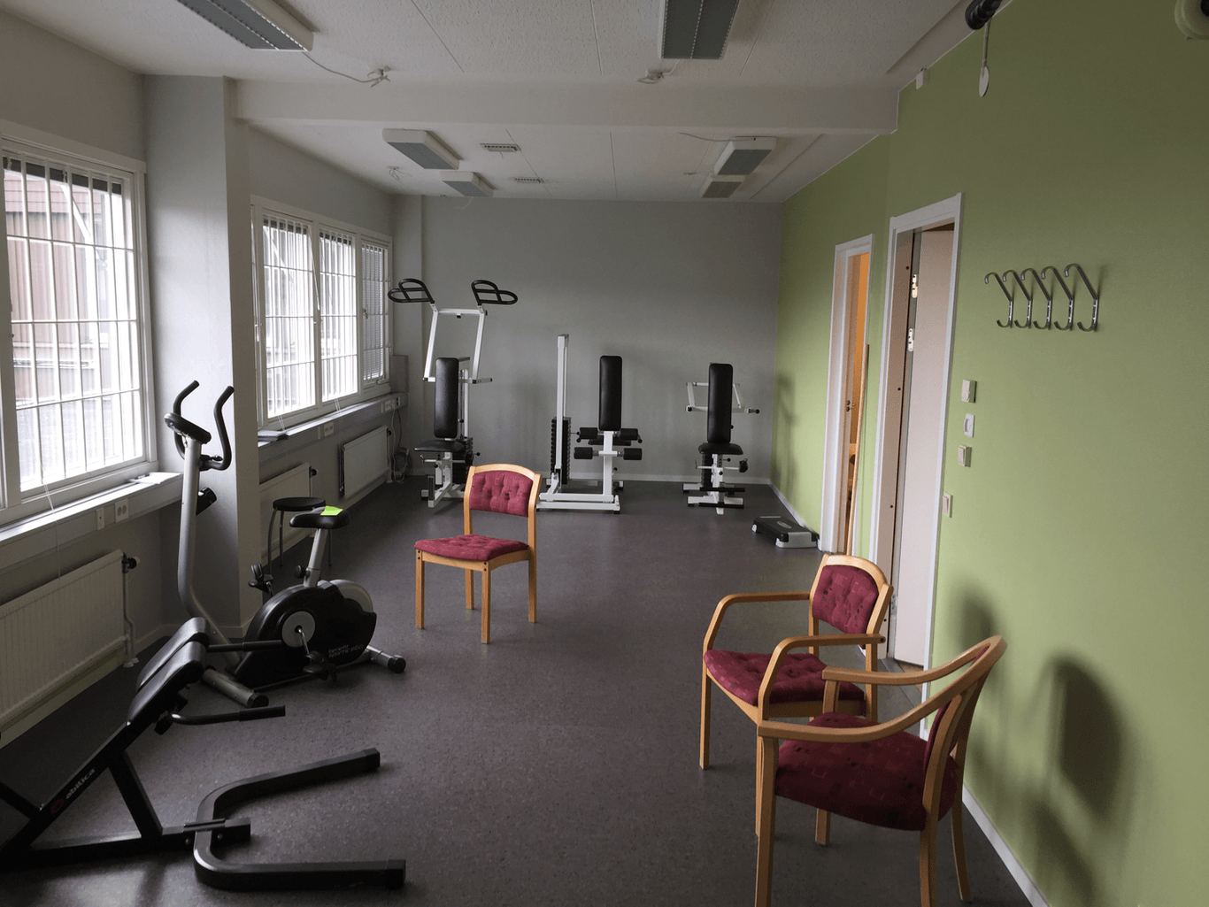Se ritning. Lokalen ligger på övervåningen med tillgång till hiss och trappor.