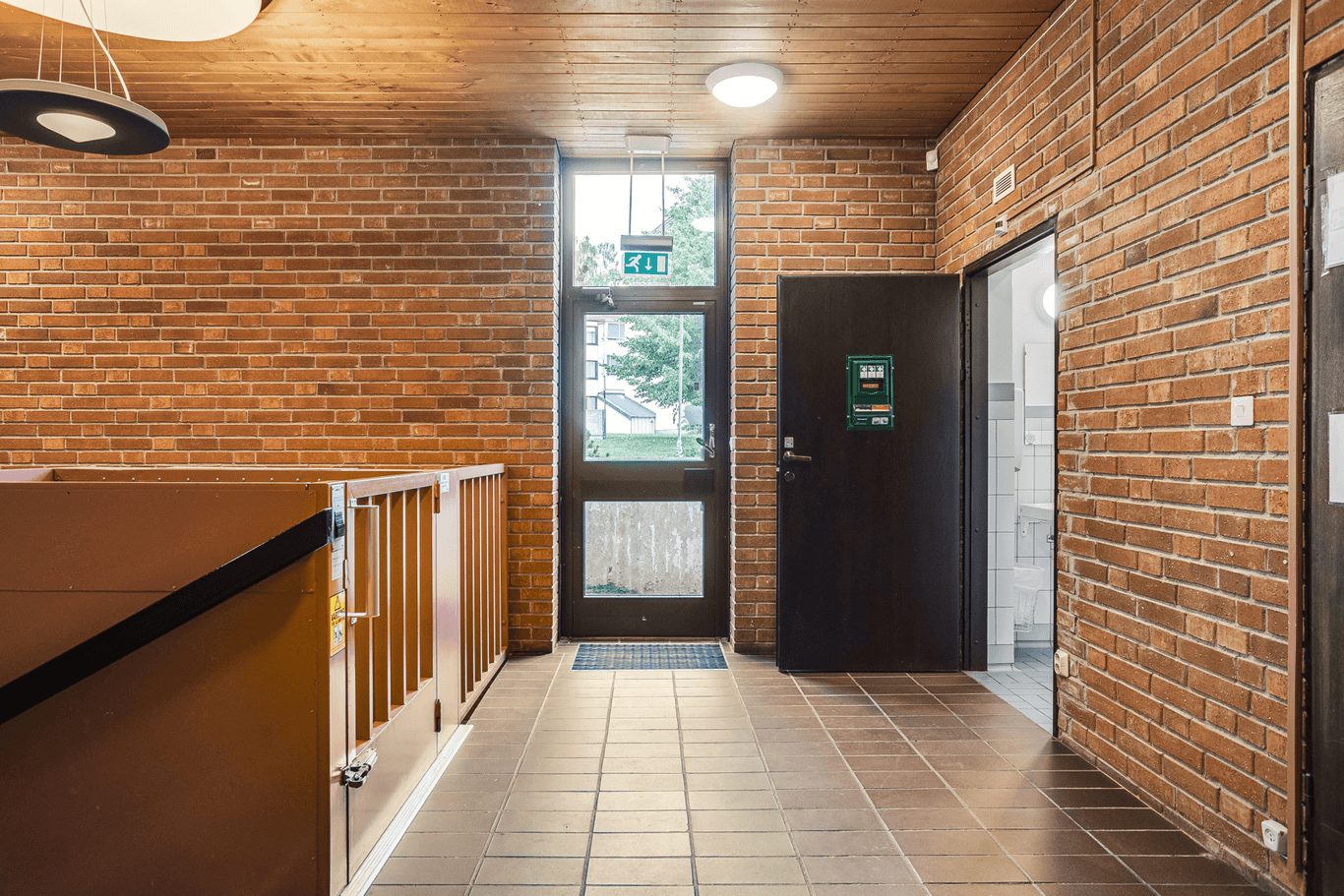 Bra bussförbindelser med busshållplats på gatan utanför. Kommunal parkering på andra sidan gatan.