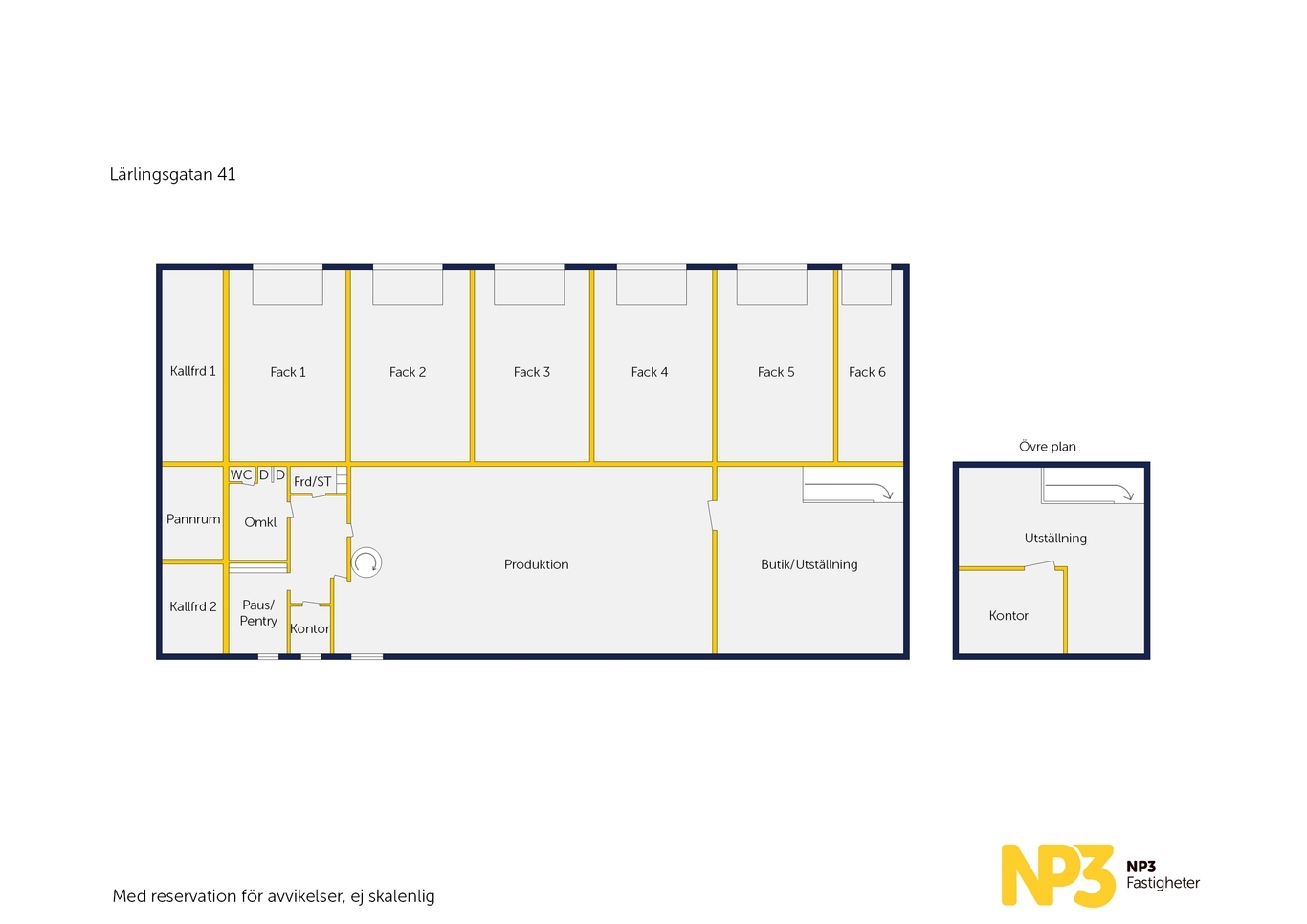 Öppet planerat industrifack med entrésolplan. Fack nr 3 på skissen.