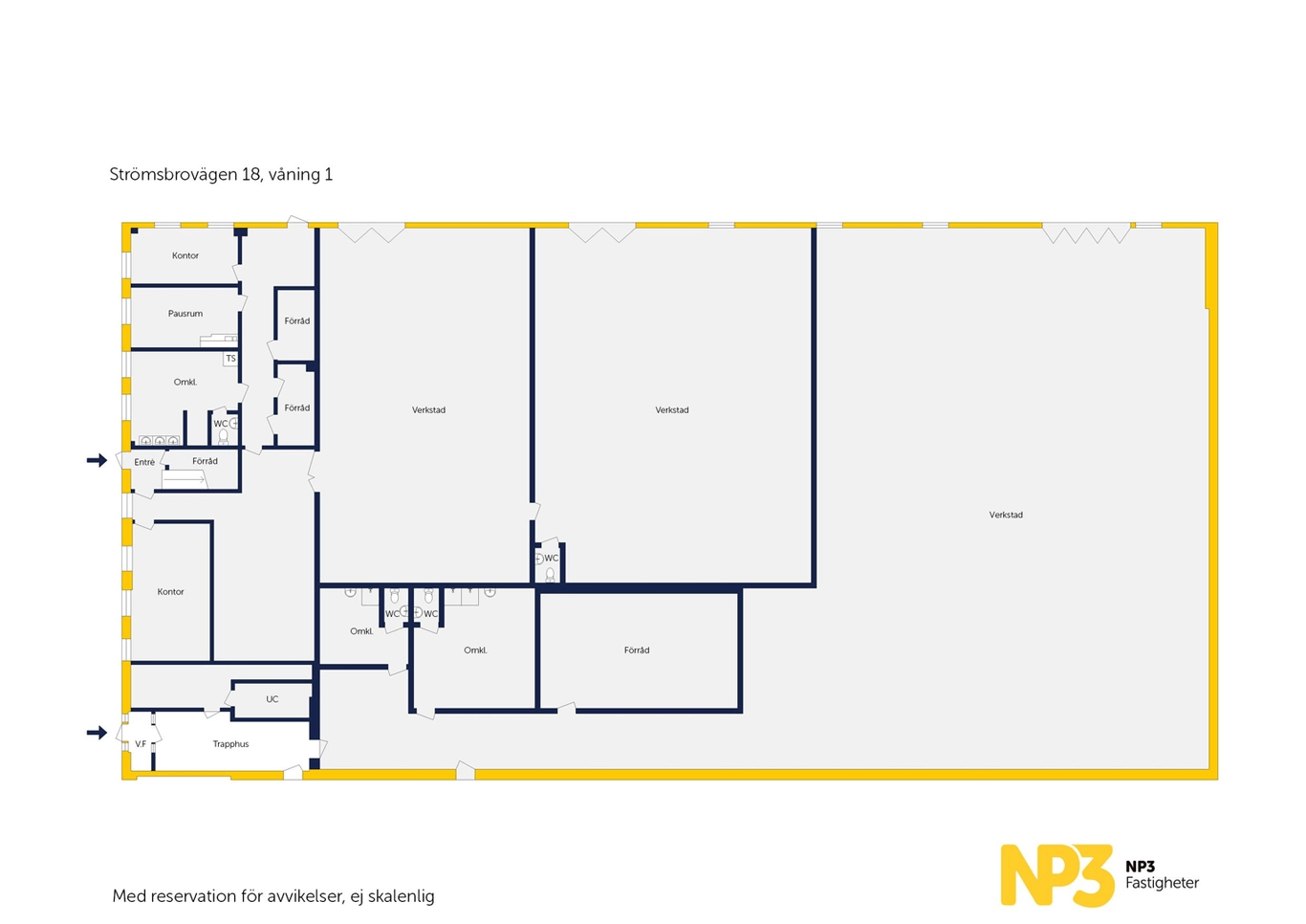 Nu finns möjlighet att överta en lokal om 1 531 kvm efter vältrafikerade Strömsbrovägen. Lokalen är fördelad på ca 550 kvm kontor och 980 kvm verkstadsytor. Möjlighet finns även att tillskapa ca 400 kvm lager samt ca 2 000 kvm mark vid önskemål.