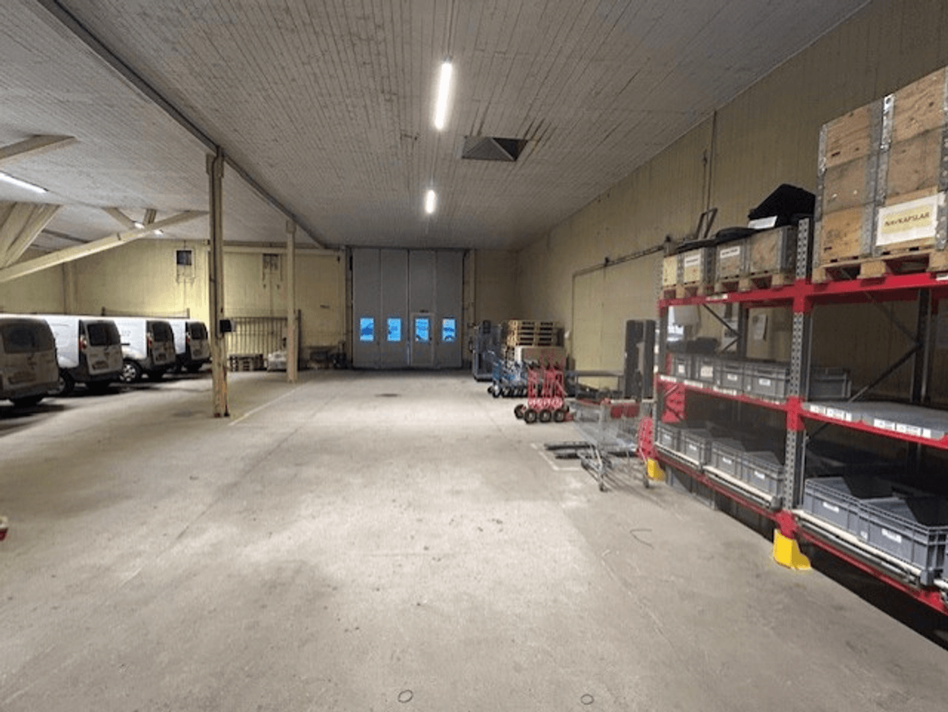 Kallförråd/lager/garage – ca 340 m² Stor, praktisk yta med generös port som gör det enkelt att lasta och lossa. Varmbonat lager/förråd/garage – ca 280 m² Även detta utrymme har stor port och passar perfekt när du behöver tempererat lager eller produktionsyta. Lokalerna är sammanlänkade, vilket möjliggör genomkörning mellan dem för smidiga flöden. Kontors- och personaldel – ca 105 m² Med pentry, kontor, omklädningsrum och WC – allt samlat för att underlätta vardagen i verksamheten.