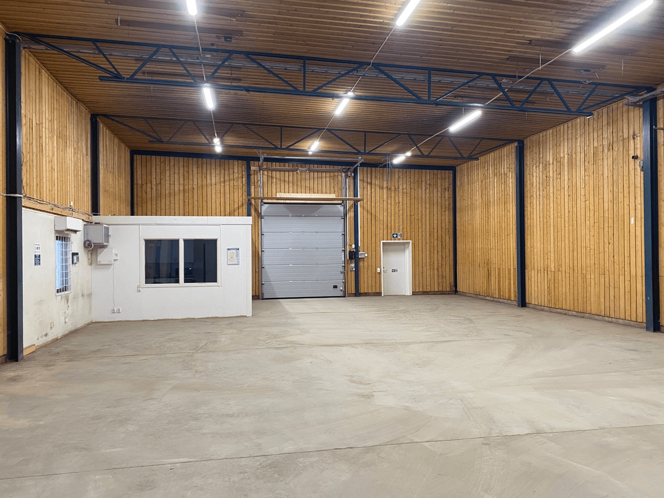 Lokalen består av ca 240 kvm varm yta samt ca 57 kvm vädertät kall yta på lastkaj. Den varma ytan utgörs av en öppen yta med motordriven port samt kök och wc.