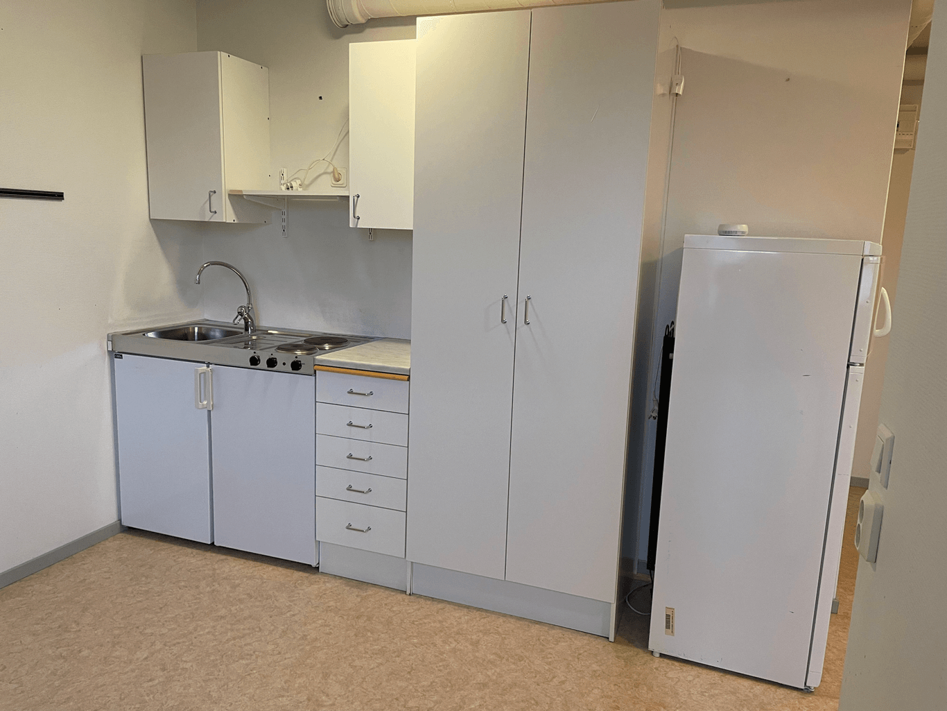 Trevligt hörnkontor med egen ingång. Två större kontorsrum, kök/matrum samt wc med dusch.