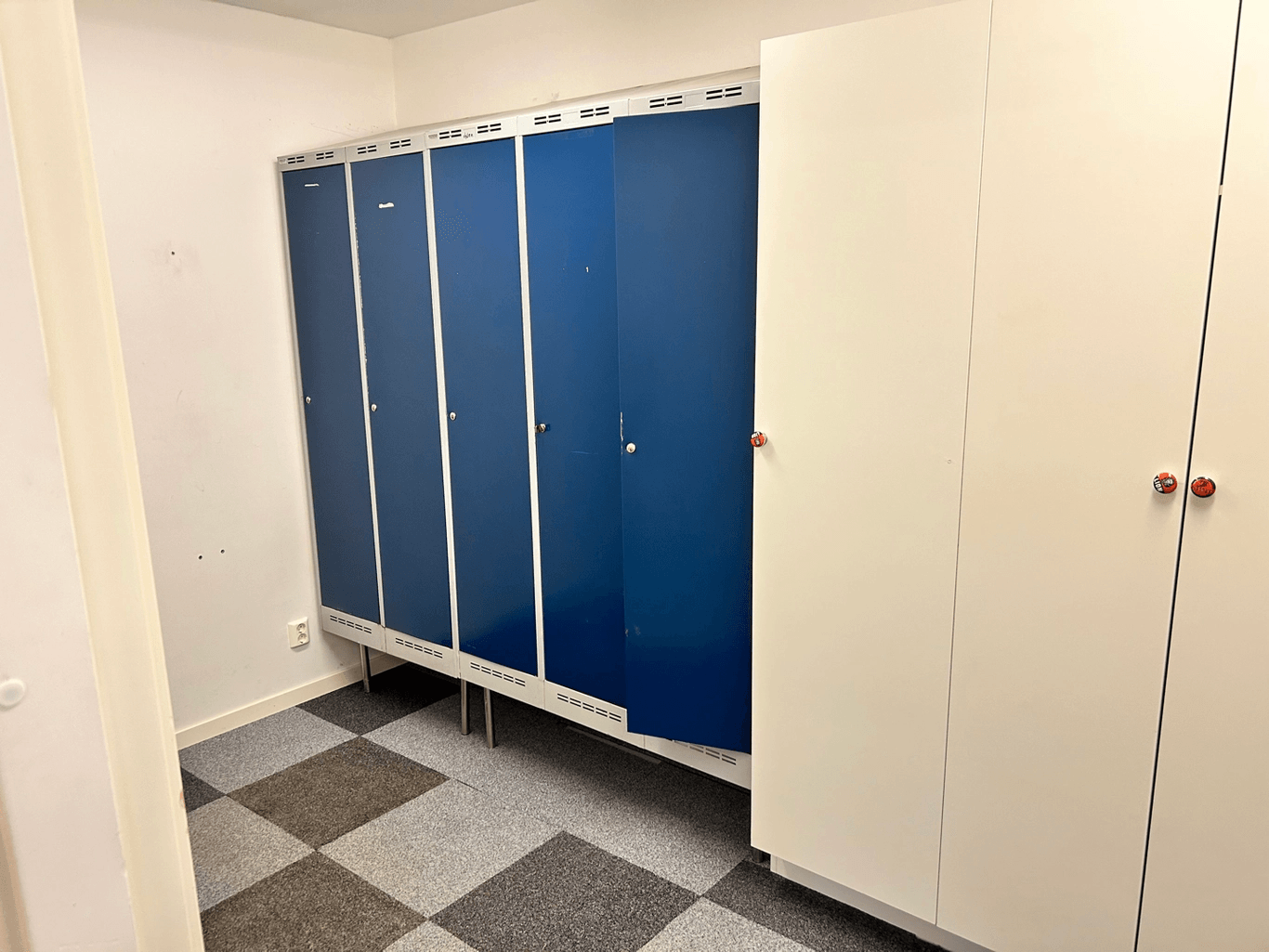 Lokal med kontorsdel, omklädning samt lager/verkstad med port. Kan även fungera som butik.