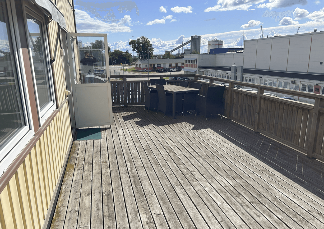 Rymligt kontor med plats för flera arbetsstationer (4-22st) Lagerdel med goda förvaringsmöjligheter. Stor balkong för trivsamma kaffestunder.