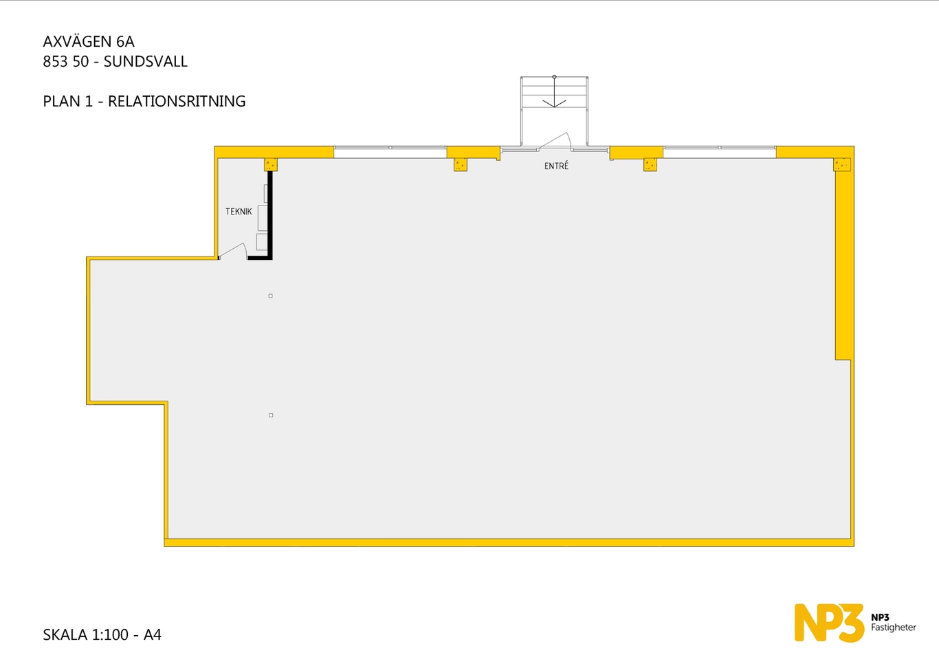 Här får du vara med och anpassa din lokal från grunden för din specifika verksamhet. En lokal med rymlig takhöjd och möjlighet till ett entresolplan.