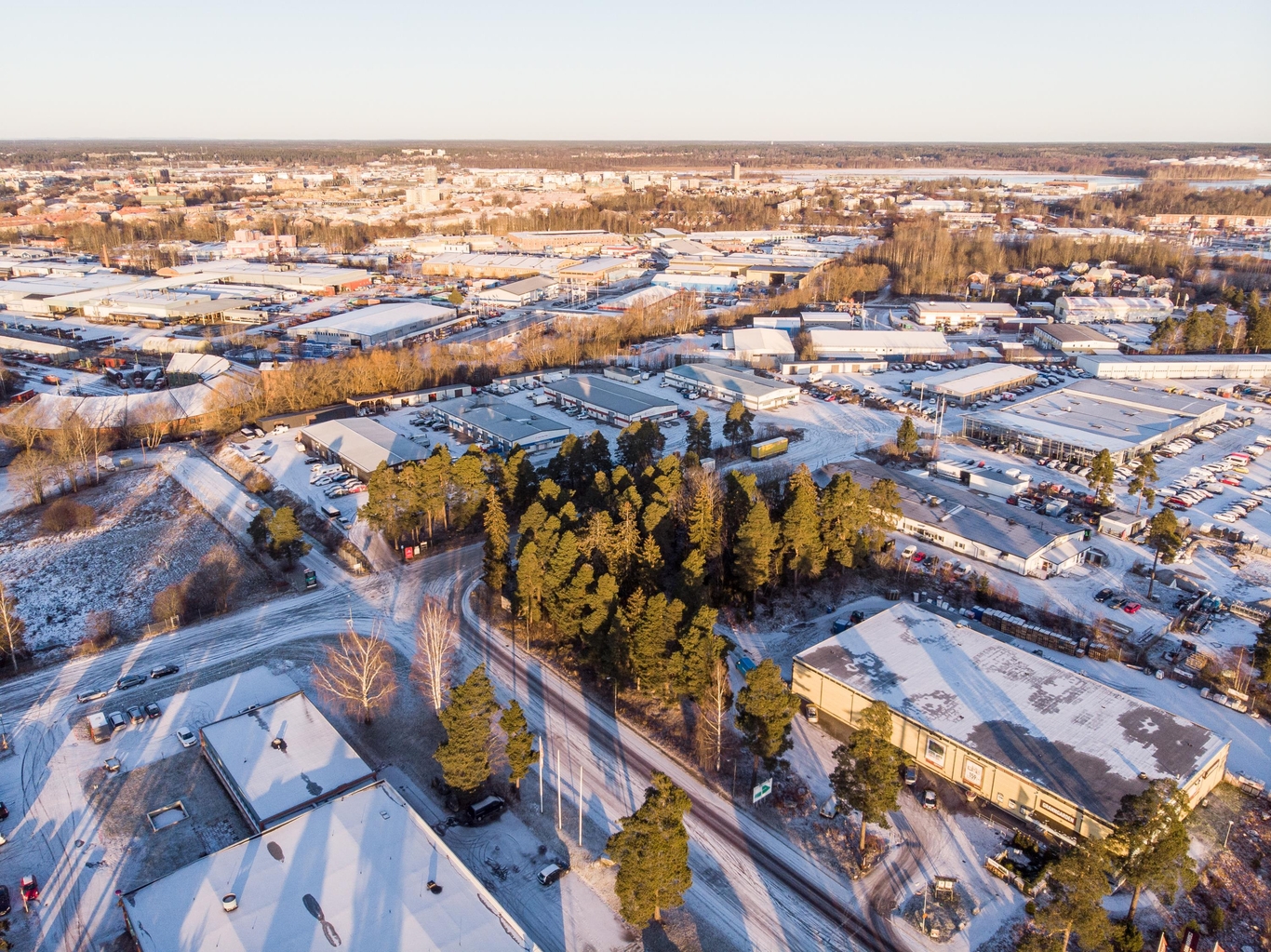 Sörby Urfjäll med alla sina butiker, småindustriverksamheter, återvinningen med mera.