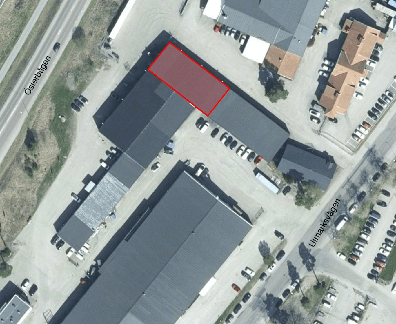 Efter Utmarksvägen med skyltläge ut mot Österbågen finns nu en lokal att hyra om 530 kvm. Lokalen har en mindre personalyta men består främst av en stor öppen verkstadsyta. Lokalen går att anpassa efter verksamhetens behov.