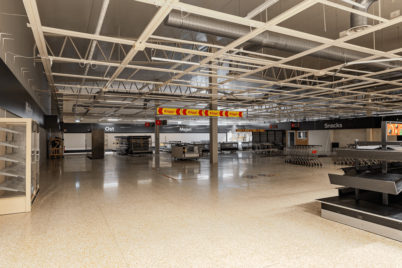 Stora öppna ytor med möjlighet att utforma lokalen efter behov. Går att nyttja hela lokalen som butik men även att dela av för att nyttja vissa delar som lager.