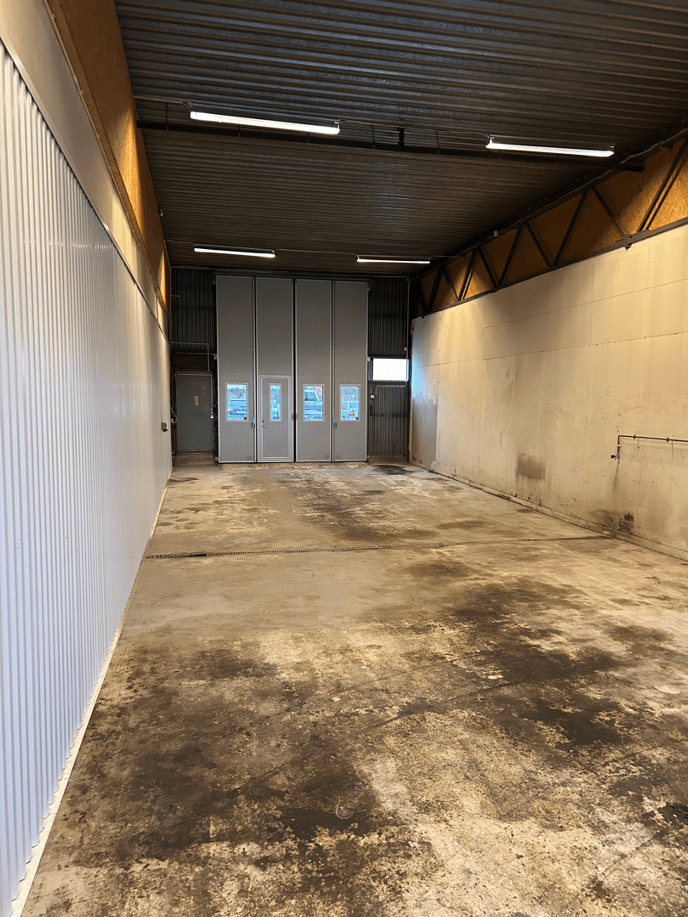 Lokalens totala yta är ca 106 kvadratmeter med en rejäl takhöjd på ca 4 meter. I övrigt så finns det golvbrunn och 3 fas uttag. Vi anpassar lokalen enligt ert behov.