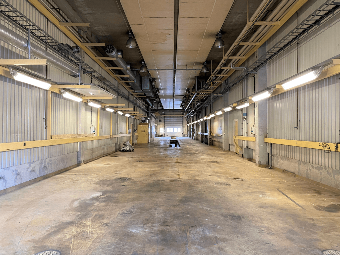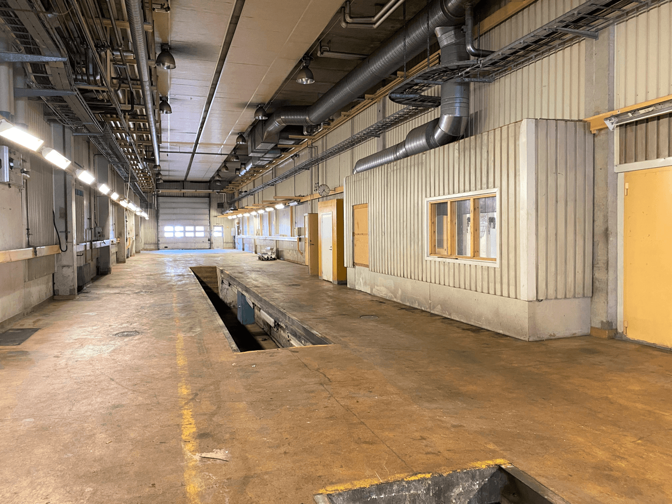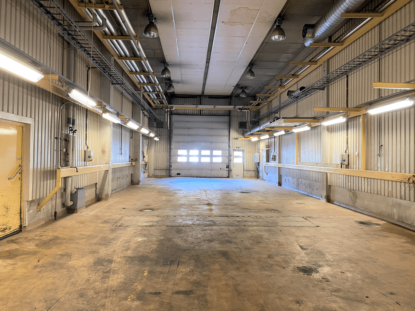 I lokalen har det tidigare bedrivits verkstad av bilar/lastbilar och består av en stor öppen yta med genomkörning, två smörjgropar och personalutrymmen.