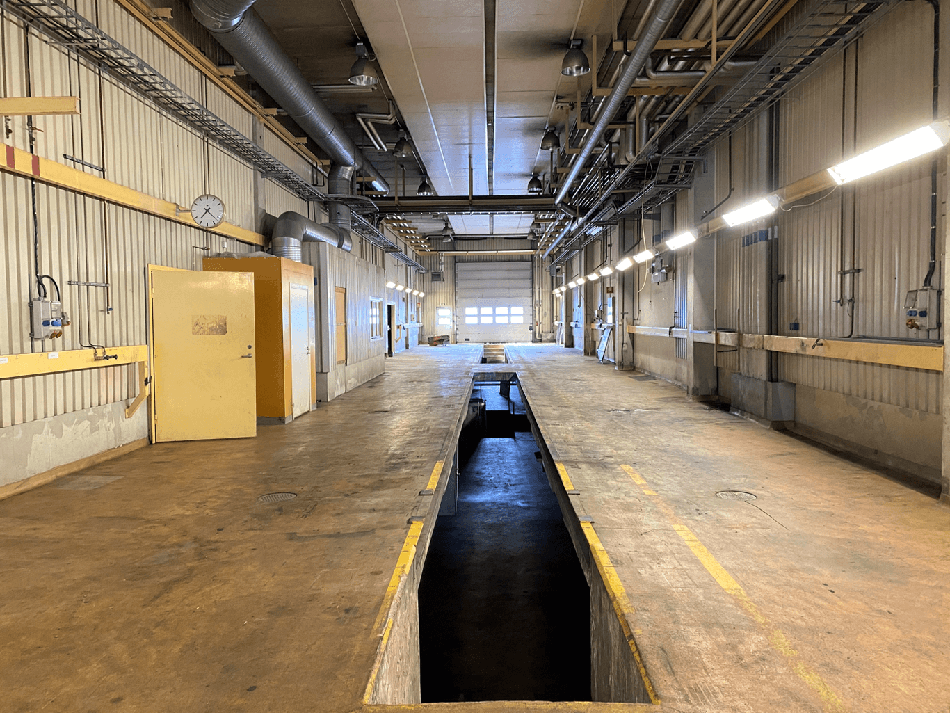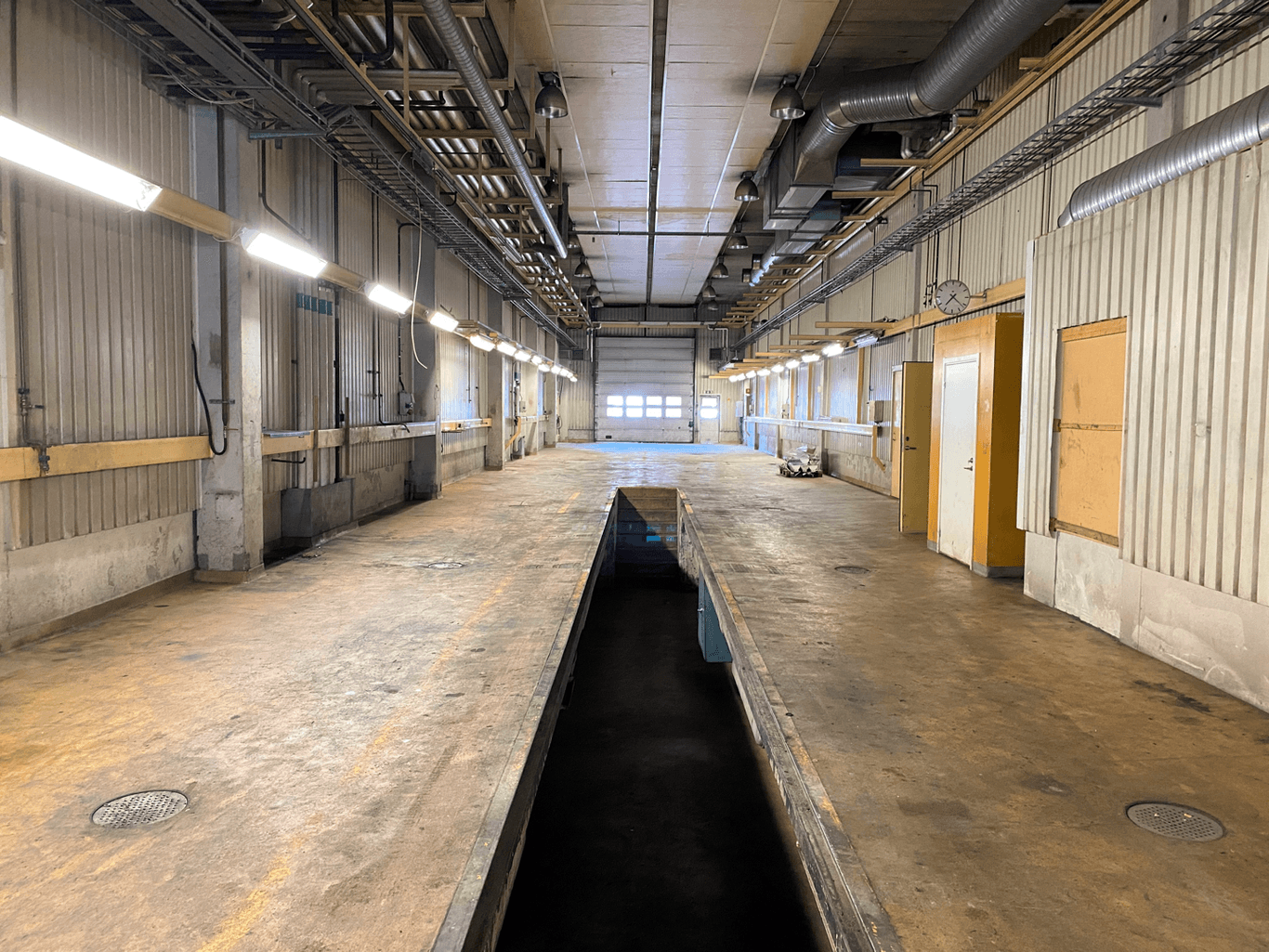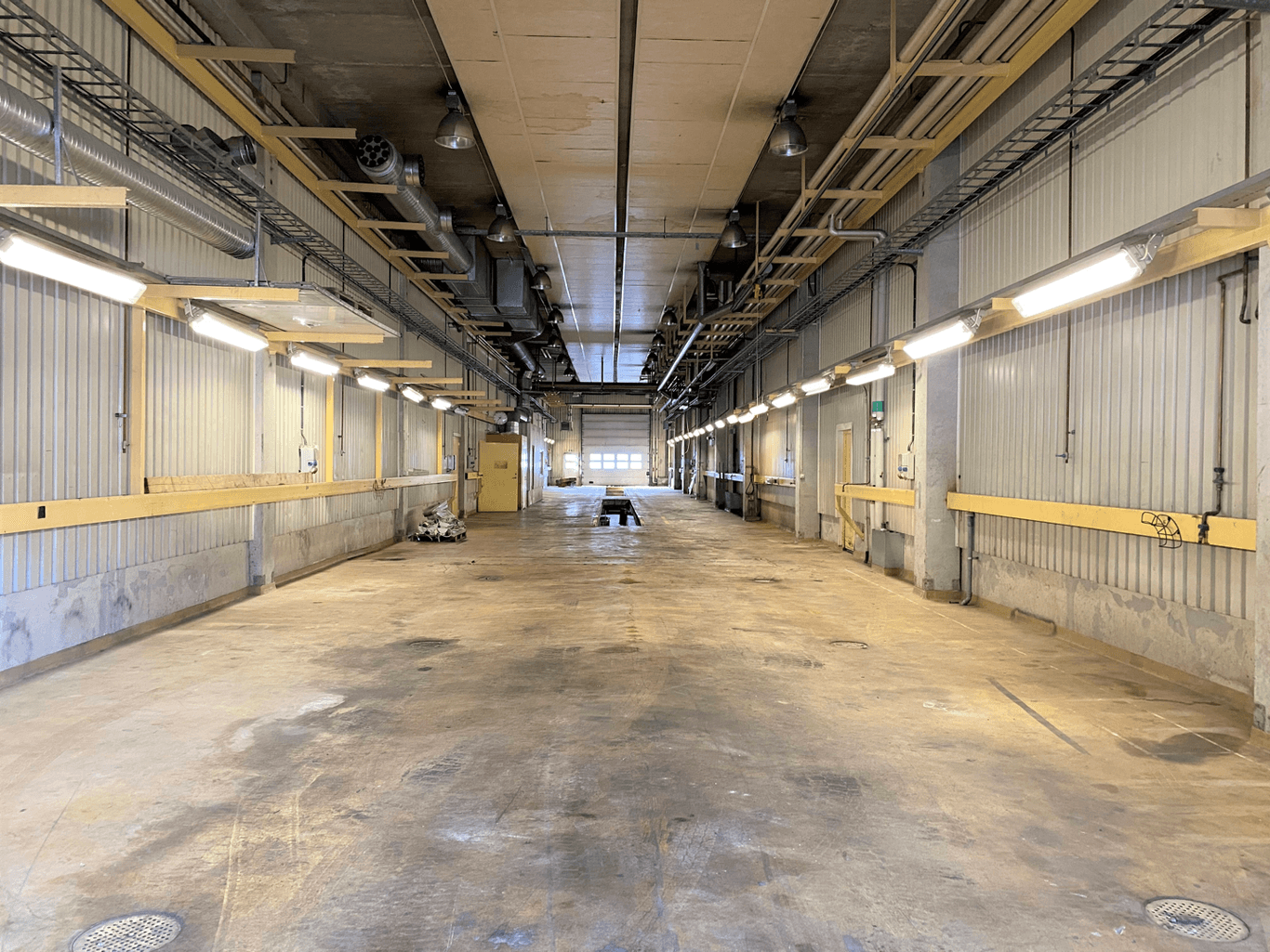 I lokalen har det tidigare bedrivits verkstad av bilar/lastbilar och består av en stor öppen yta med genomkörning, två smörjgropar och personalutrymmen.