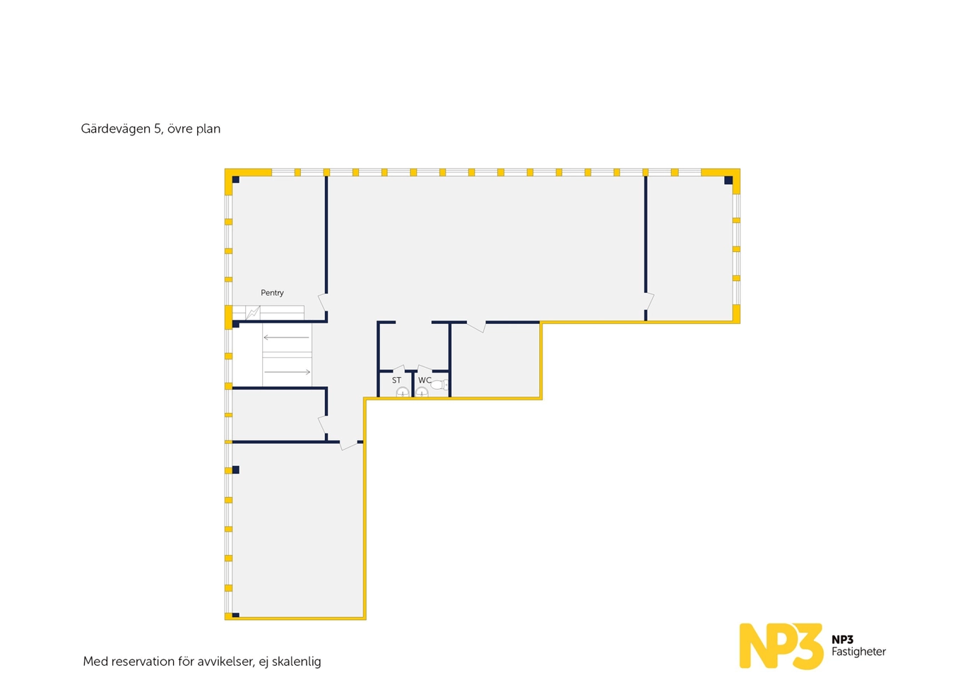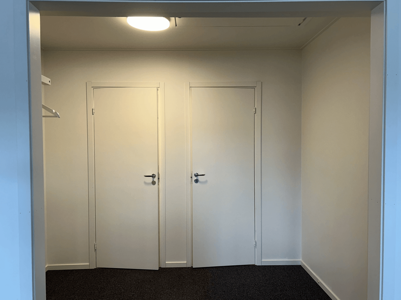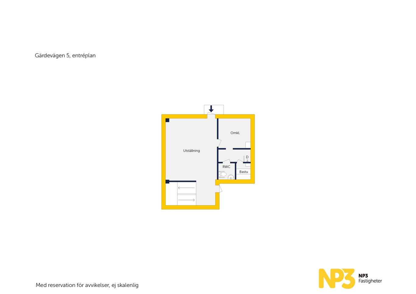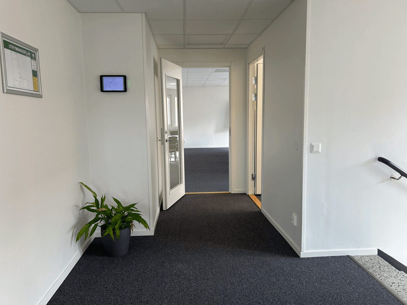 Här välkomnas du av en fin entré på plan 1 med omklädningsrum, dusch och toalett. En trappa upp finns kontors- och personalutrymmen bestående av kontorslandskap, konferens, fikarum och toaletter.