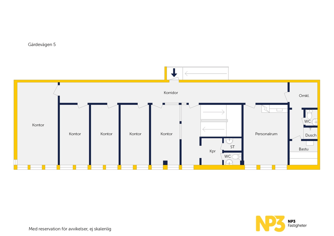 Lokalen lämpar sig till er som föredrar enskilda kontorsrum men går även att anpassa efter önskemål. Utöver kontorsrum erbjuder även lokalen konferensrum, fikarum samt omklädningsrum med dusch.