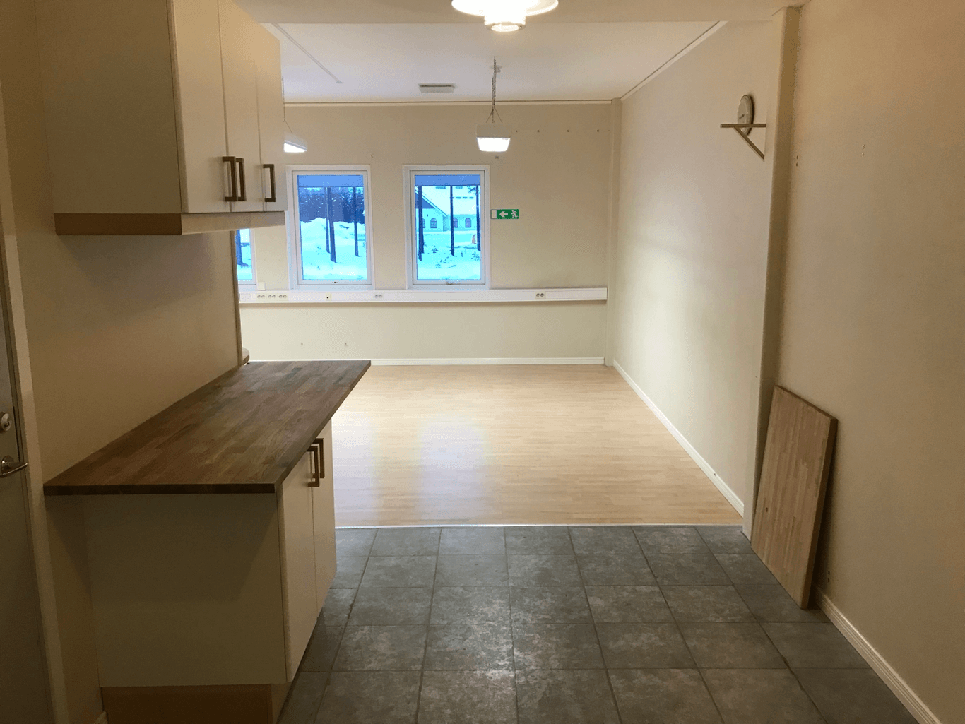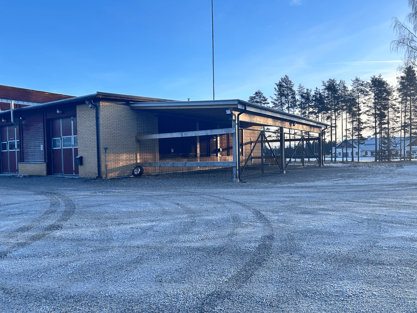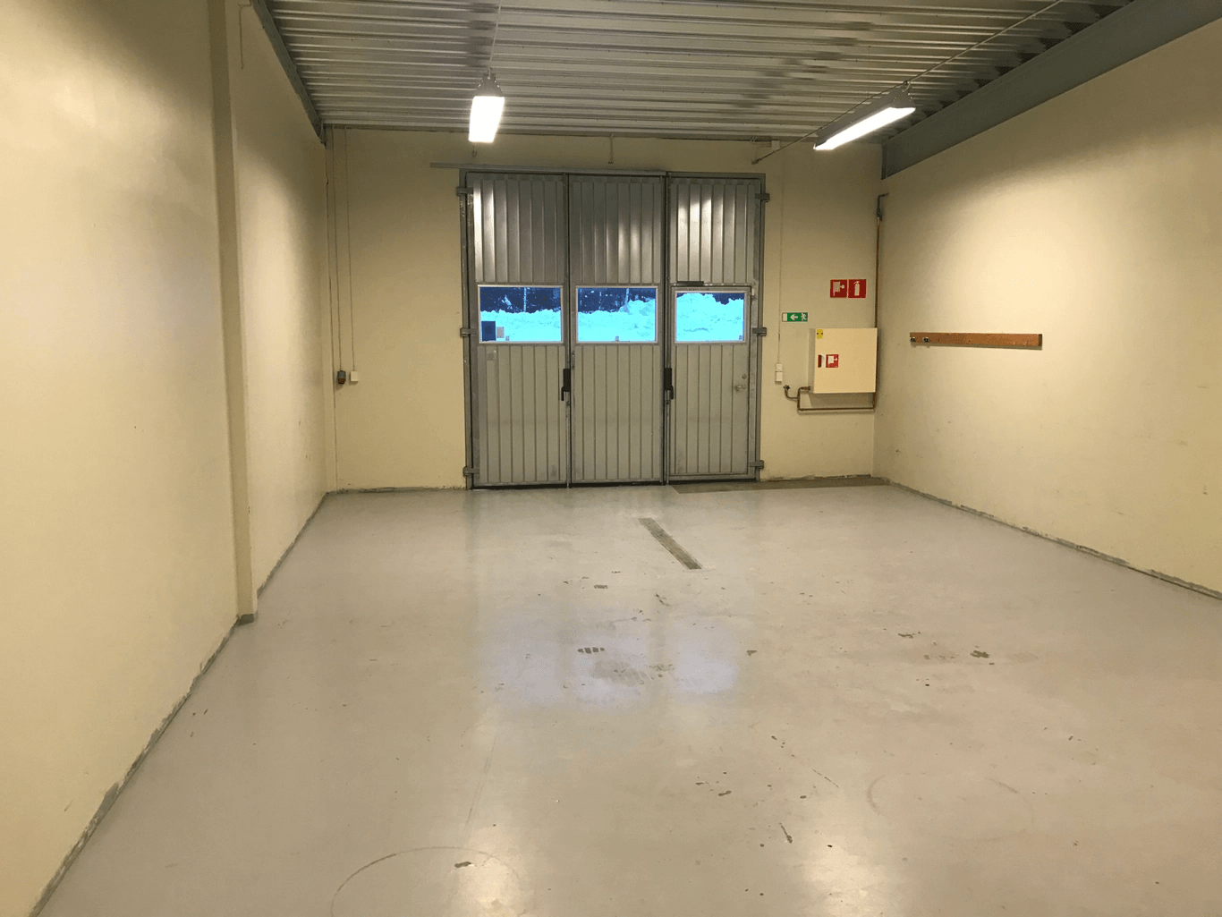 Verkstads/lager/garage lokal med tillhörande kontor och omklädningsrum. Porten är 3 meter bred och 3,2 meter hög. Carport för 5 bilar finns intill lokalen.