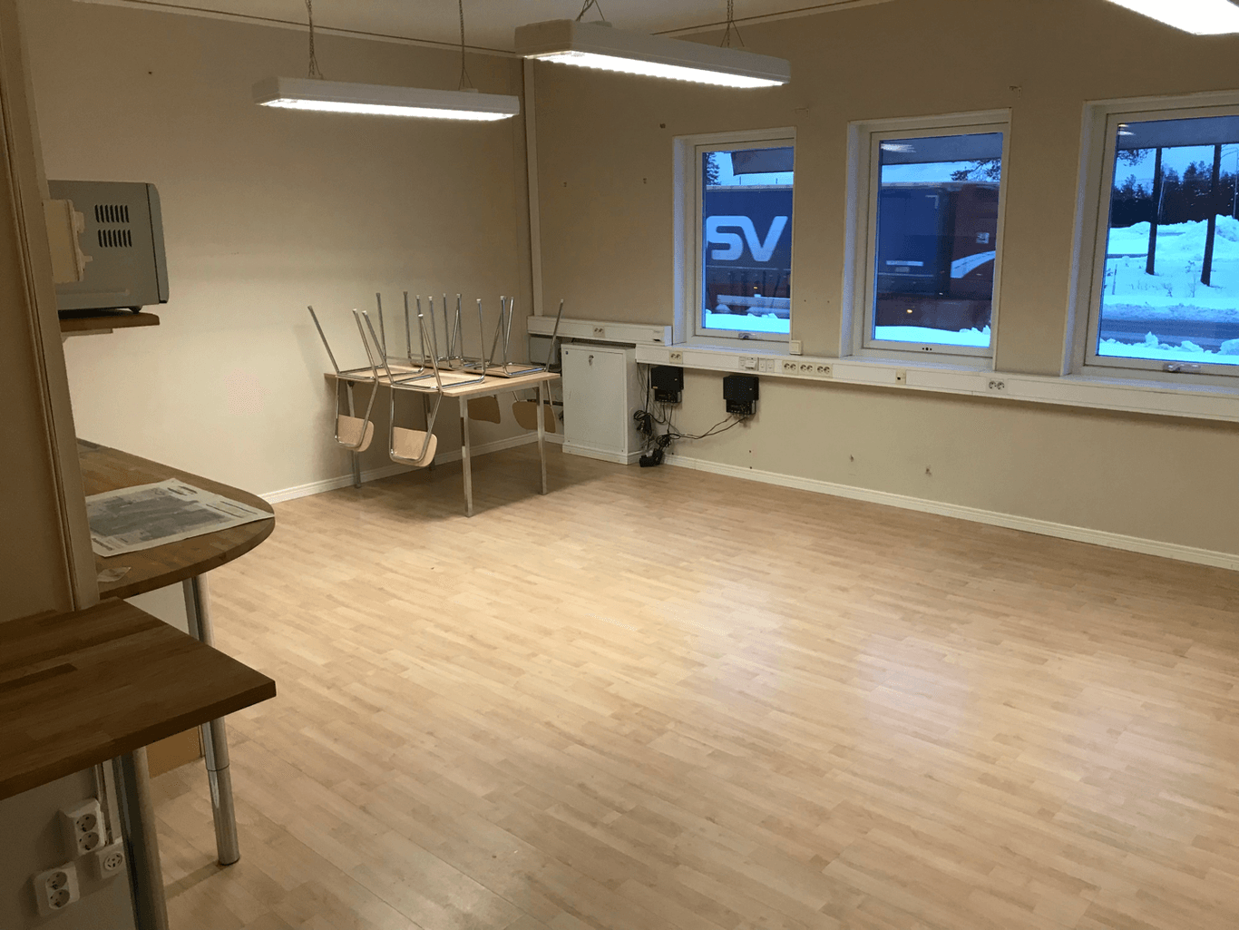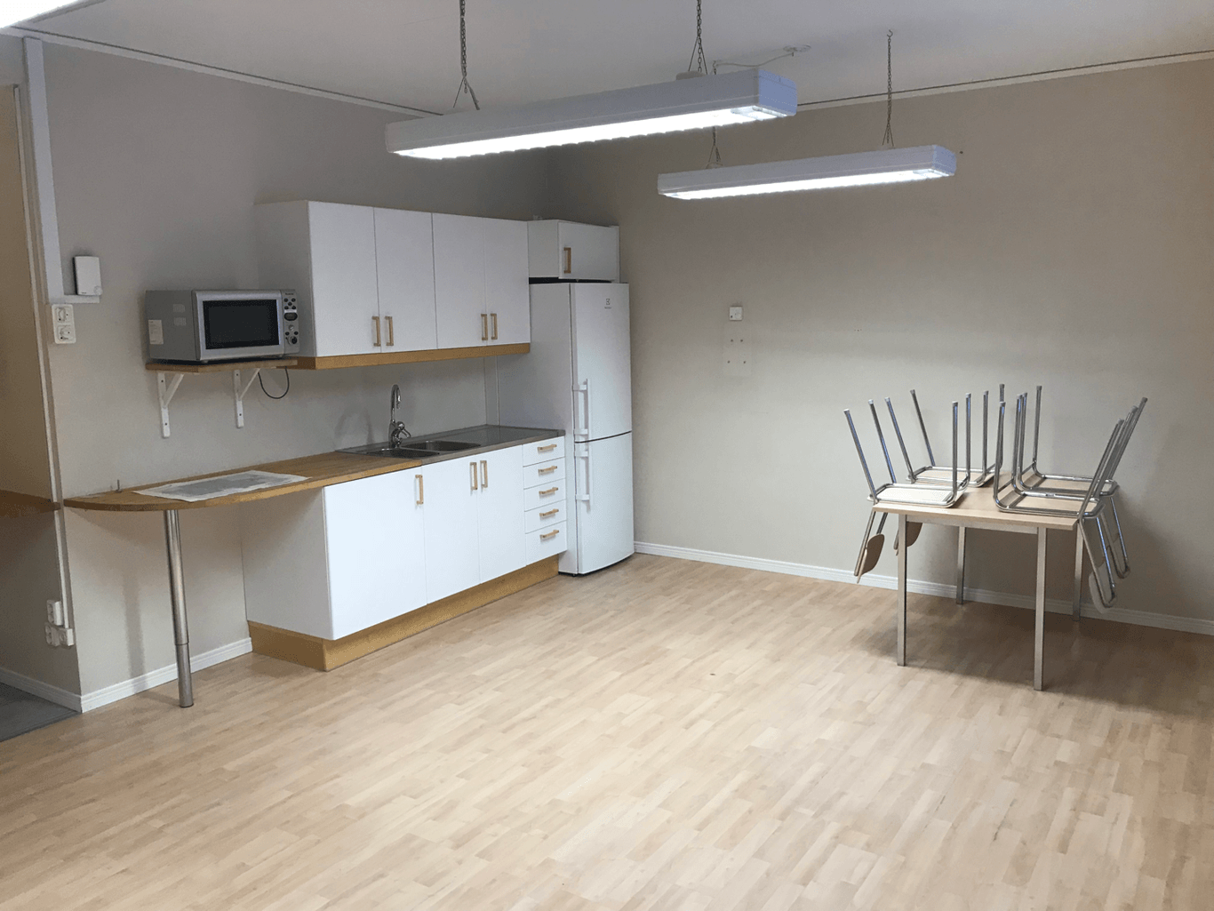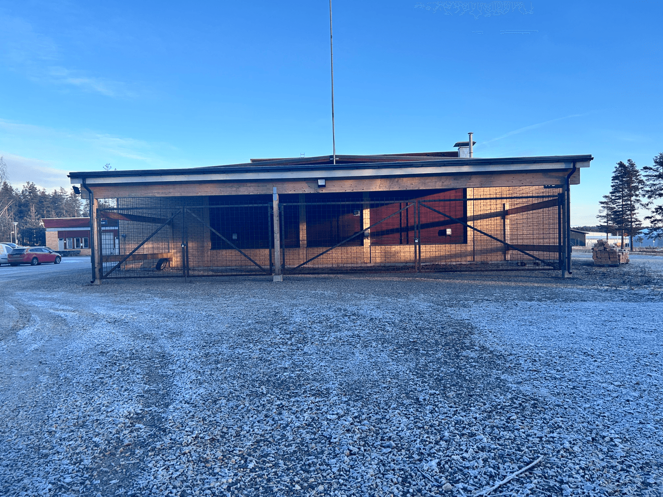 Verkstads/lager/garage lokal med tillhörande kontor och omklädningsrum. Porten är 3 meter bred och 3,2 meter hög. Carport för 5 bilar finns intill lokalen.