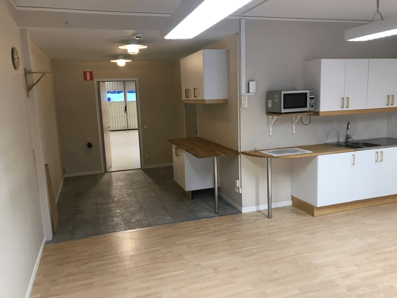 Mindre lokal med port och tillhörande kontor