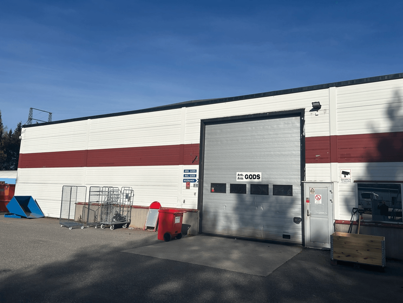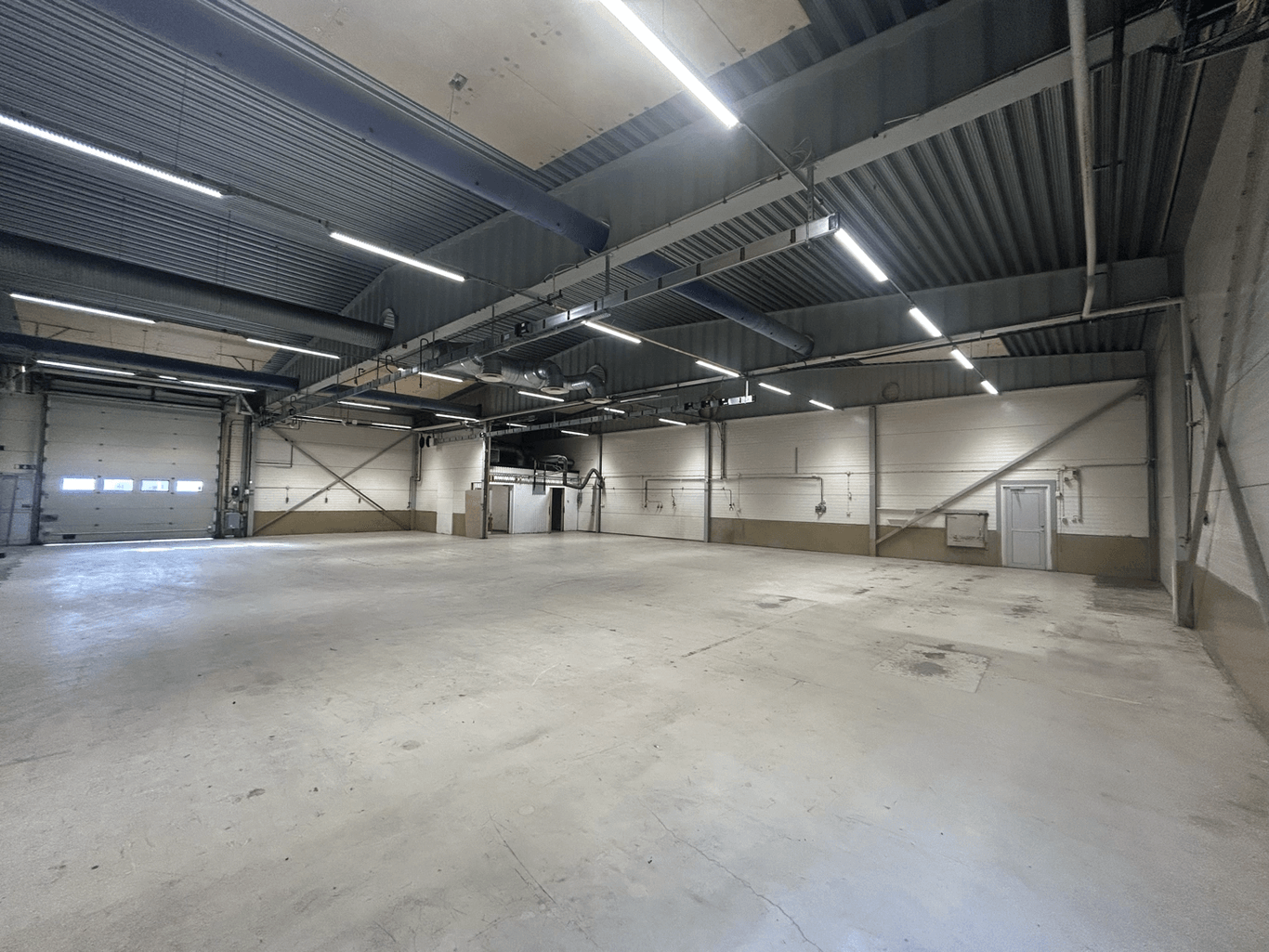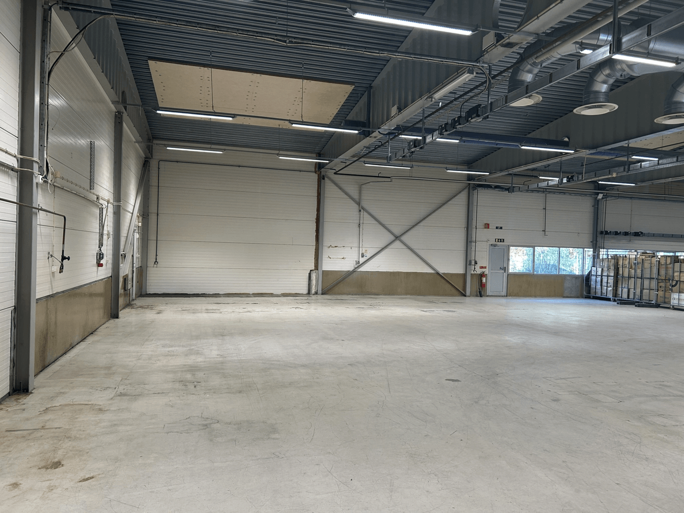 Höglager med måtten 18 x 24 m helt utan pelare. Ny LED-belysning och port med mått 4 x 4,5 m (bredd x höjd).