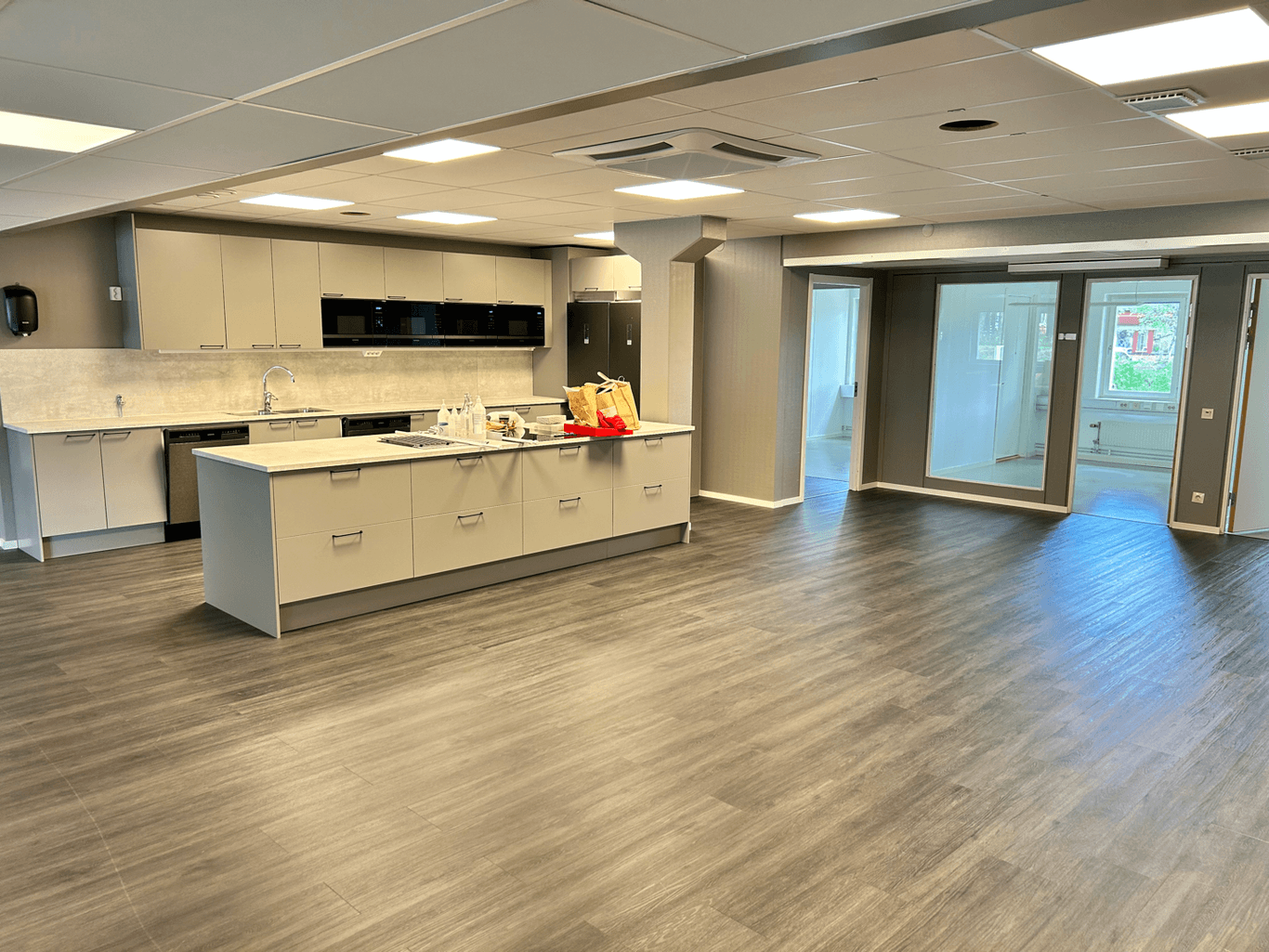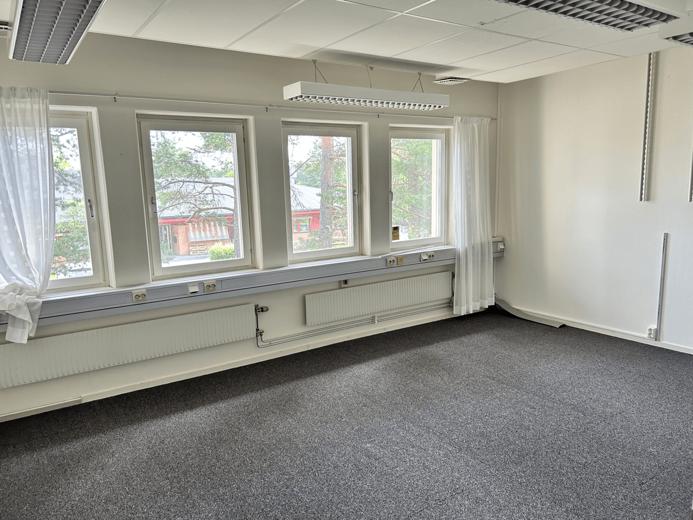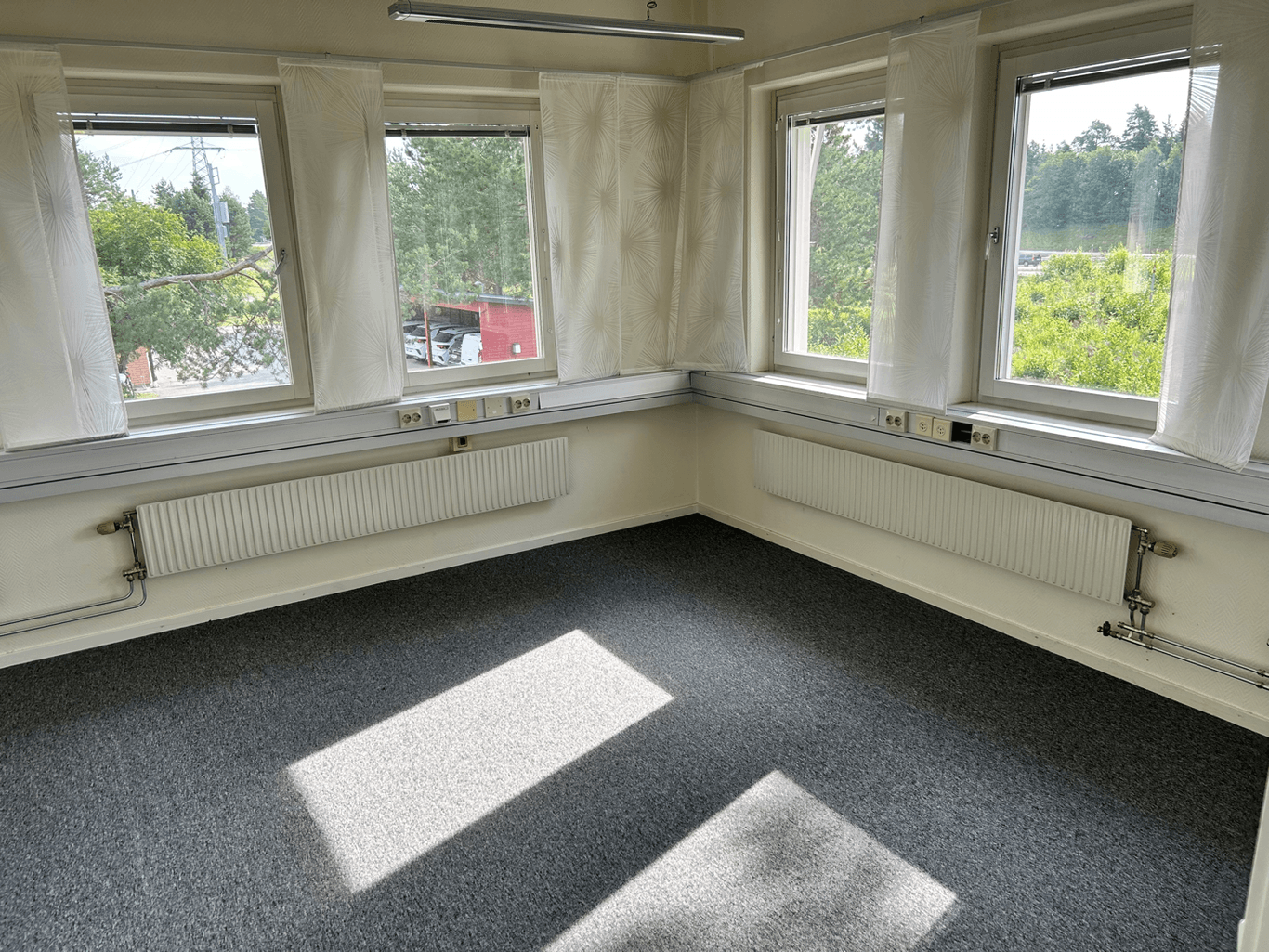 Här finns möjligheten att hyra hela kontorsbyggnaden alternativt delar av den. Bra planlösning med både mindre kontor och öppna planlösningar i två plan, med konferensrum högst upp.