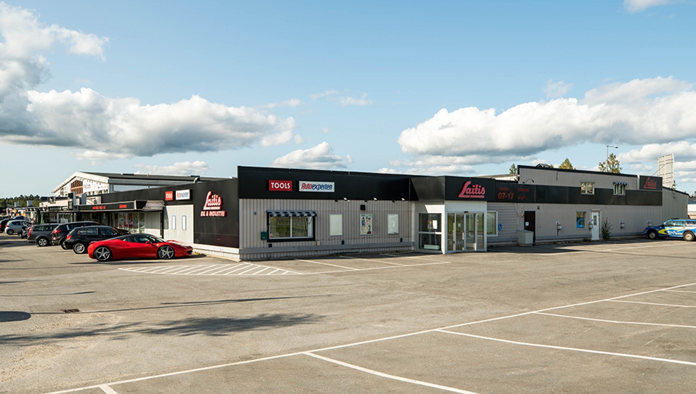 Fastigheten Björnjägaren 2 ligger med bästa tänkbara handelsläge på Mariedal och Stora Birks handelsområde. På fastigheten som ligger på Björnvägen 11B finns två välkända varumärken i hyresgästerna Ohlssons tyger och Laitis som säljer verktyg bildelar och mycket annat som kan vara bra att ha. På fastigheten finns även en populär lucnhrestaurang. Byggnaden på fastigheten omfattar idag ca 2700 kvm.